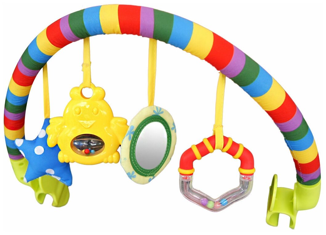 Дуга с подвесками Забава крепится с помощью специальных прищепок к коляске, автокреслу или детской кроватке. Яркие игрушки-подвески привлекают внимание малыша и развлекают его. К дуге Забава крепятся четыре подвески: мягкая игрушка, две пластиковые погремушки, безопасное зеркальце. Играя, ребенок развивает мелкую моторику рук, слух, эмоциональное, зрительное восприятие и тактильные ощущения.