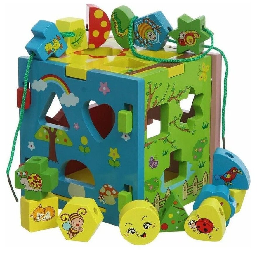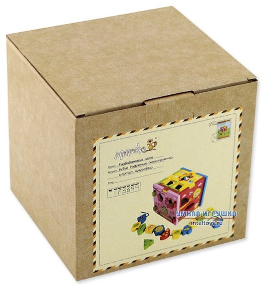 Куб-сортер - необычная развивающая игрушка для малыша. Это одновременно и конструктор, и сортер, и шнуровка. Для начала малышу предстоит собрать куб, применив свою смекалку. А потом можно уже смело начинать играть, заполняя собранный куб различными фигурками. Каждая фигурка - часть сюжета, изображенного на гранях куба. Кроме того, все детали имеют специальное отверстие, через которое можно продеть шнурок! Развивающие игры еще никогда не были такими веселыми! Размер куба в собранном виде - 14х14 см.