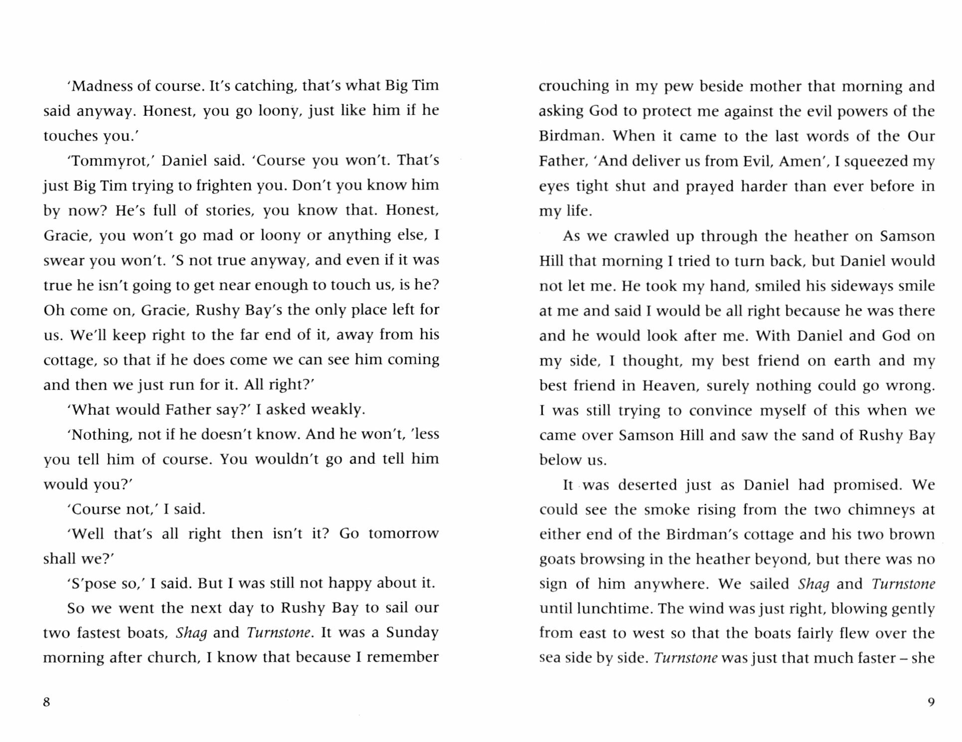 Gracie and her friend Daniel have always been warned to stay away from the Birdman and his side of the island. But then they find a message in the sand and discover the Birdman is not who they thought. They build up a lovely friendship with him, but when the children get stranded on Samson Island they don’t know whether to believe the birdman’s story that the island is cursed.