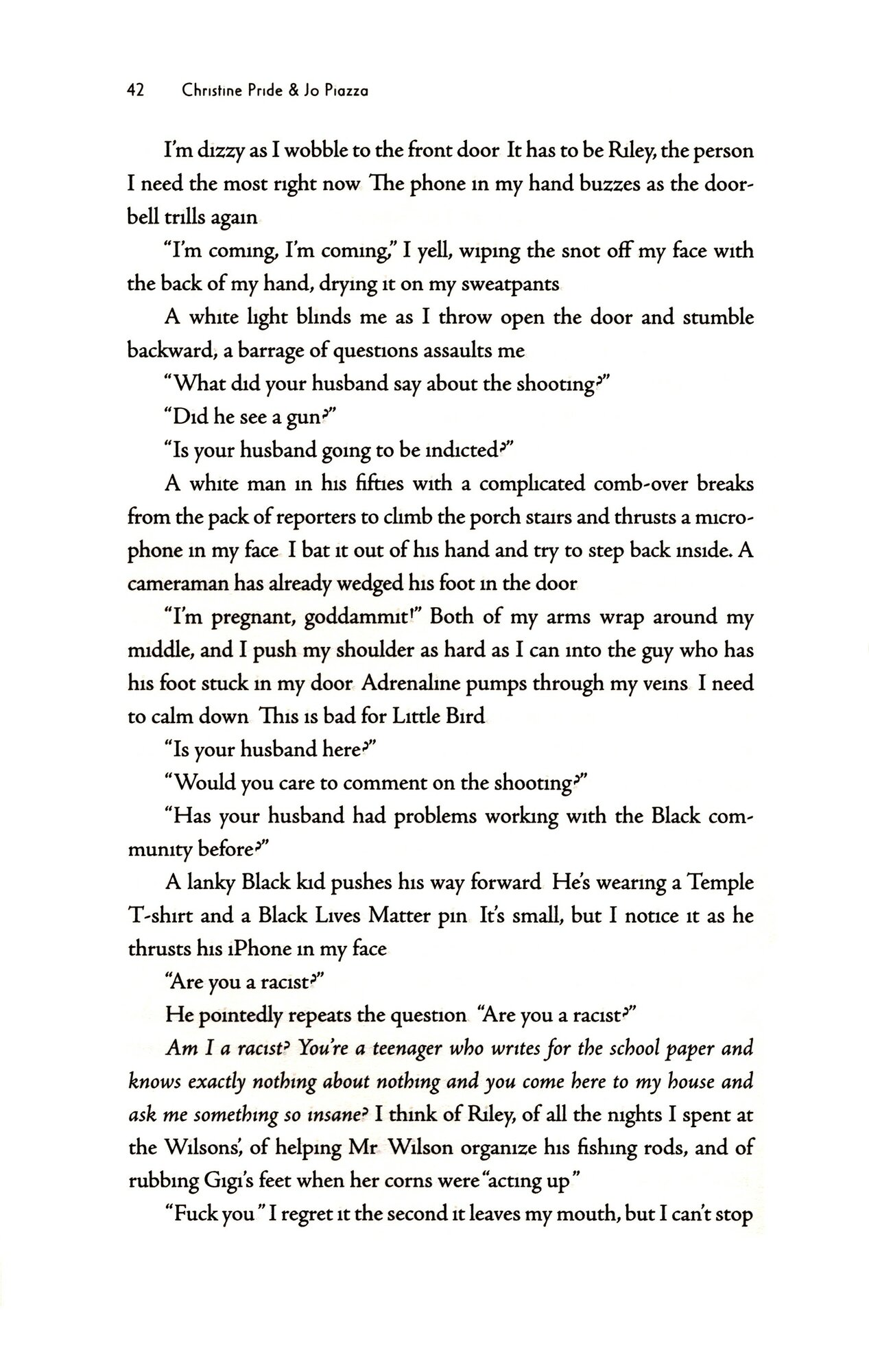 Riley and Jen have been best friends since they were children, and they thought their bond was unbreakable. It never mattered to them that Riley is black and Jen is white. And then Jen's husband, a Philadelphia police officer, is involved in the shooting of an unarmed black teenager and everything changes in an instant.