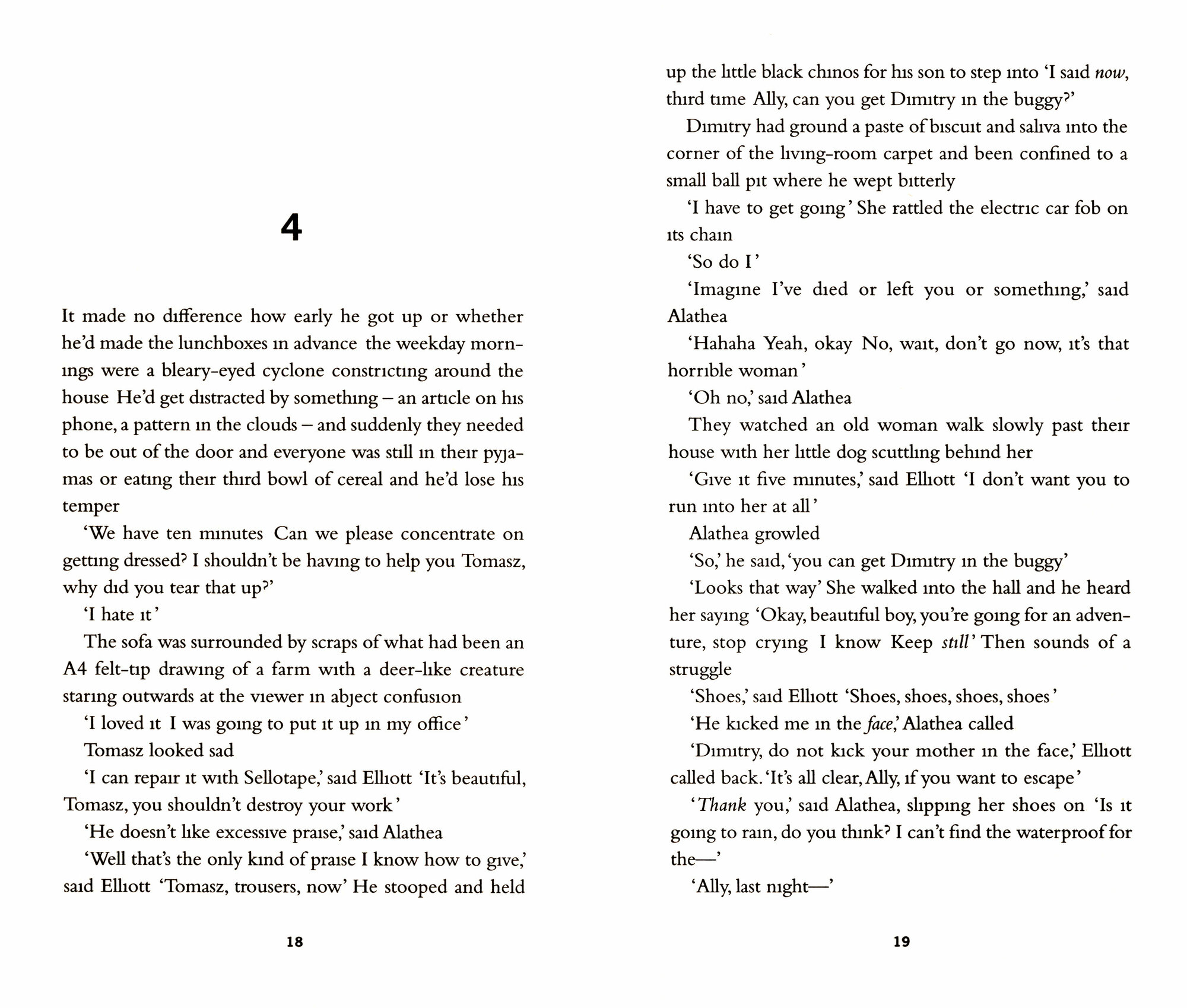 Enter Alathea and Elliott, their new neighbours, and also parents of two young boys. Alathea is intimidatingly confident and beautiful, but also disarmingly open and friendly. And Elliott … Elliott is intriguing. Dishevelled, talented, charming and a little lost, he seems as fascinated by Emily as she is by him, and soon their friendship has reached an intensity neither of them seem able to control.