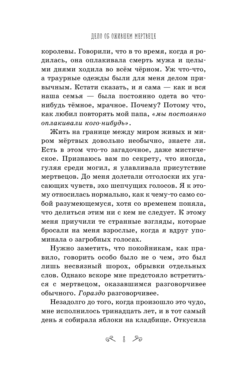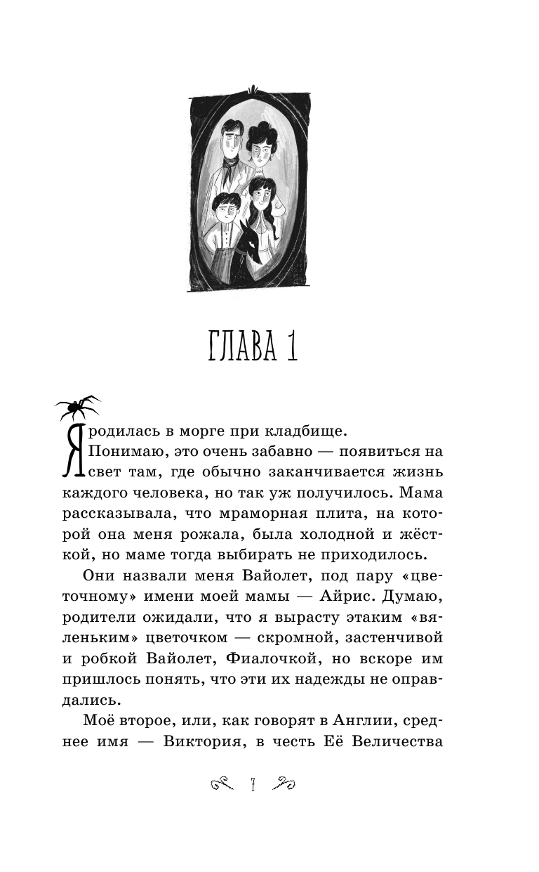 Основное место действия - кладбище, но это не страшно, а зловеще-романтично. Тем более что героиня, Ваойлет, выросла на кладбище (она дочь владельца похоронного бюро), и для нее это спокойное, знакомое, тихое место. Да-да, расследование ведет юная героиня, Ваойлет Вейл, девочка-подросток. Как мы понимаем, в Викторианской Англии девочки-подростки не вели расследований, так что ей предстоит сражаться не только с кознями преступников, но и с предубеждениями. И это будет задорно, интересно и по-юношески свежо! Читатели 12 лет в восторге, да и мне тоже понравилось. Любителям Уилки Коллинза, Мориса Леблана, Эдгара По, да и просто тайн и загадок с легкой ноткой мистики - рекомендую!