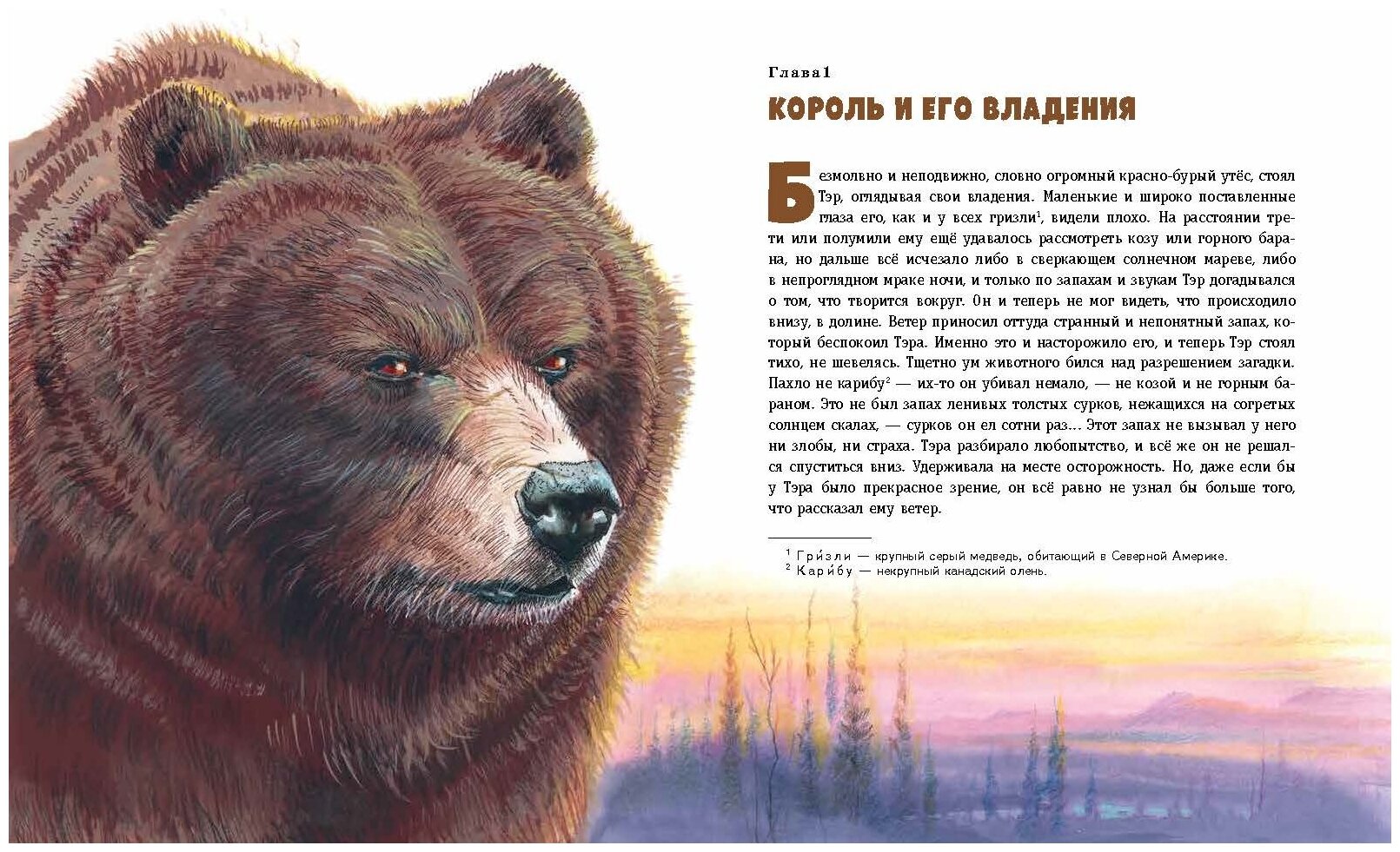 Тактильно приятная обложка, с выпуклыми элементами. Крупный шрифт, белая плотная бумага. Безумно красивые и хорошо подобраны иллбсрации Канивца, которые передают эмоции животных. Сам рассказ не для маленьких детей. Есть жестокие моменты, но такова реальность дикой природы. Автору удалось передать атмосферу жителей скалистых гор. На протяжении всей книги переживаешь за главных героев-медведей.