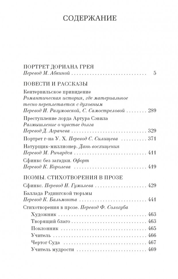 За сборник ставлю оценку 4. Неплохой дорожный вариант для первого знакомства с автором. Заглавное произведение «Портрет Дориана Грея» мне не понравилось. Сюжет предсказуемый; за ним наблюдать мне было довольно скучно; герои частенько раздражали (особенно Генри и сам Дориан). Хотелось быстро дочитать всё это. Однако мысли занятные, слог автора вкусный. Что же касается рассказов, то моими фаворитами стали «Кентервильское привидение» и «Преступление лорда Артура Сэвила». Оба они комичны. Самый непонятый мною рассказ, который я пролистала - «Портрет г-на У.Х.». Поэмы обе в целом понравились, но хочу выделить именно «Балладу Рэдингской тюрьмы». Очень проникновенное произведение. Стихотворения в прозе - это интересный опыт. Напоминают мини-притчи. Читала их после «Портрета Дориана Грея» и они реабилитировали в моих глазах автора. Сборник рекомендую.