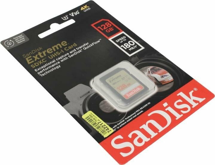 Карта памяти 128Gb SanDisk Extreme SDXC Class 10 UHS-I U3 V30 (180/90 MB/s) SDSDXVA-128G-GNCIN