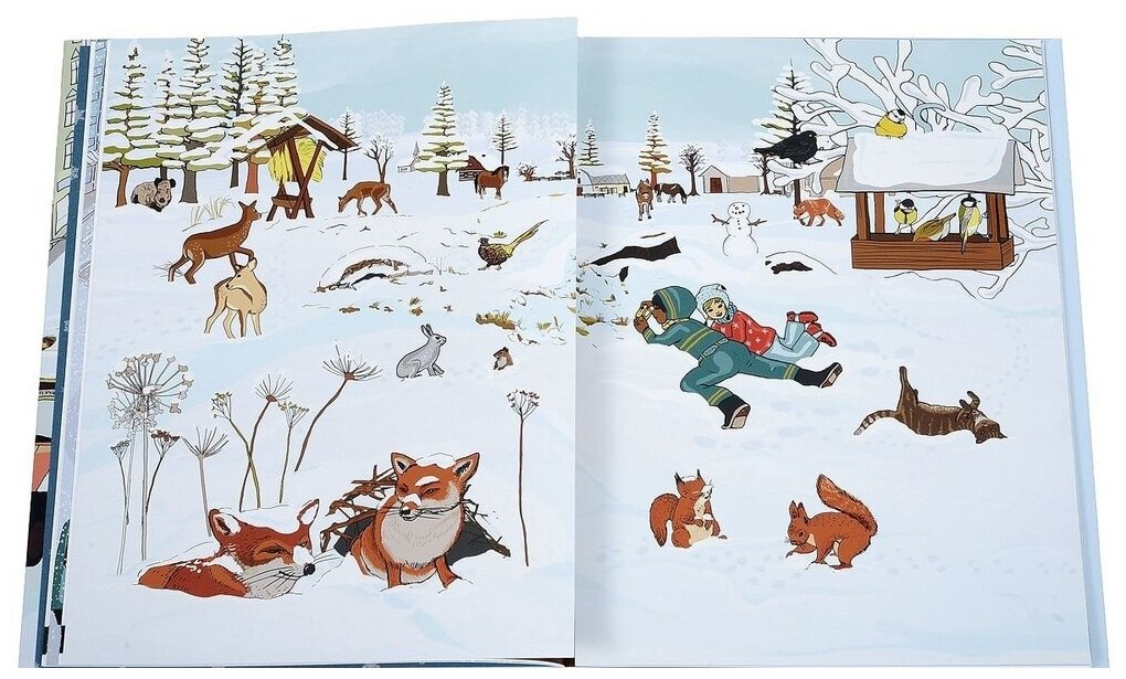 Предложите ребенку найти мелкую деталь на красочном развороте. Кто найдет санки на картинке с заснеженной улицей? А собаку на полярной станции? Такая игра развивает внимание; кроме того, это ужасно весело — только попробуйте.