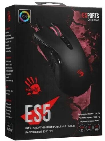 Мышь A4TECH Bloody ES5, игровая, оптическая, проводная, USB, черный