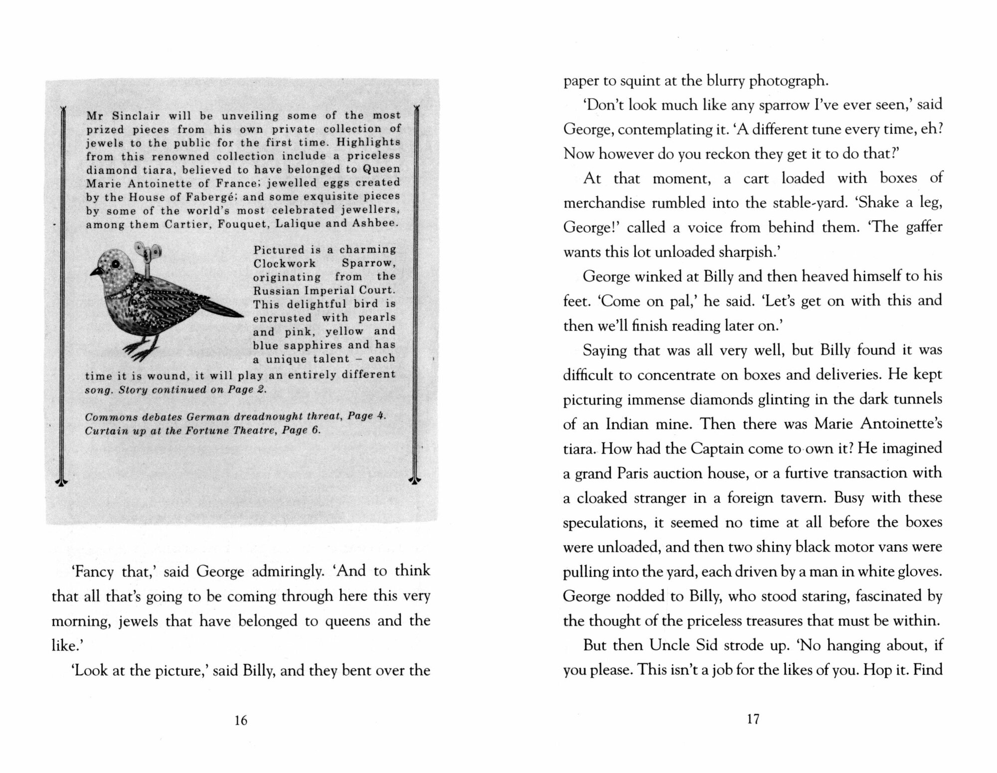 Enter a world of bonbons, hats, perfumes and mysteries around every corner. Wonder at the daring theft of the priceless Clockwork Sparrow! Tremble as the most dastardly criminals in London enact their wicked plans! Gasp as our bold heroines, Miss Sophie Taylor and Miss Lilian Rose, crack codes, devour iced buns and vow to bring the villains to justice...