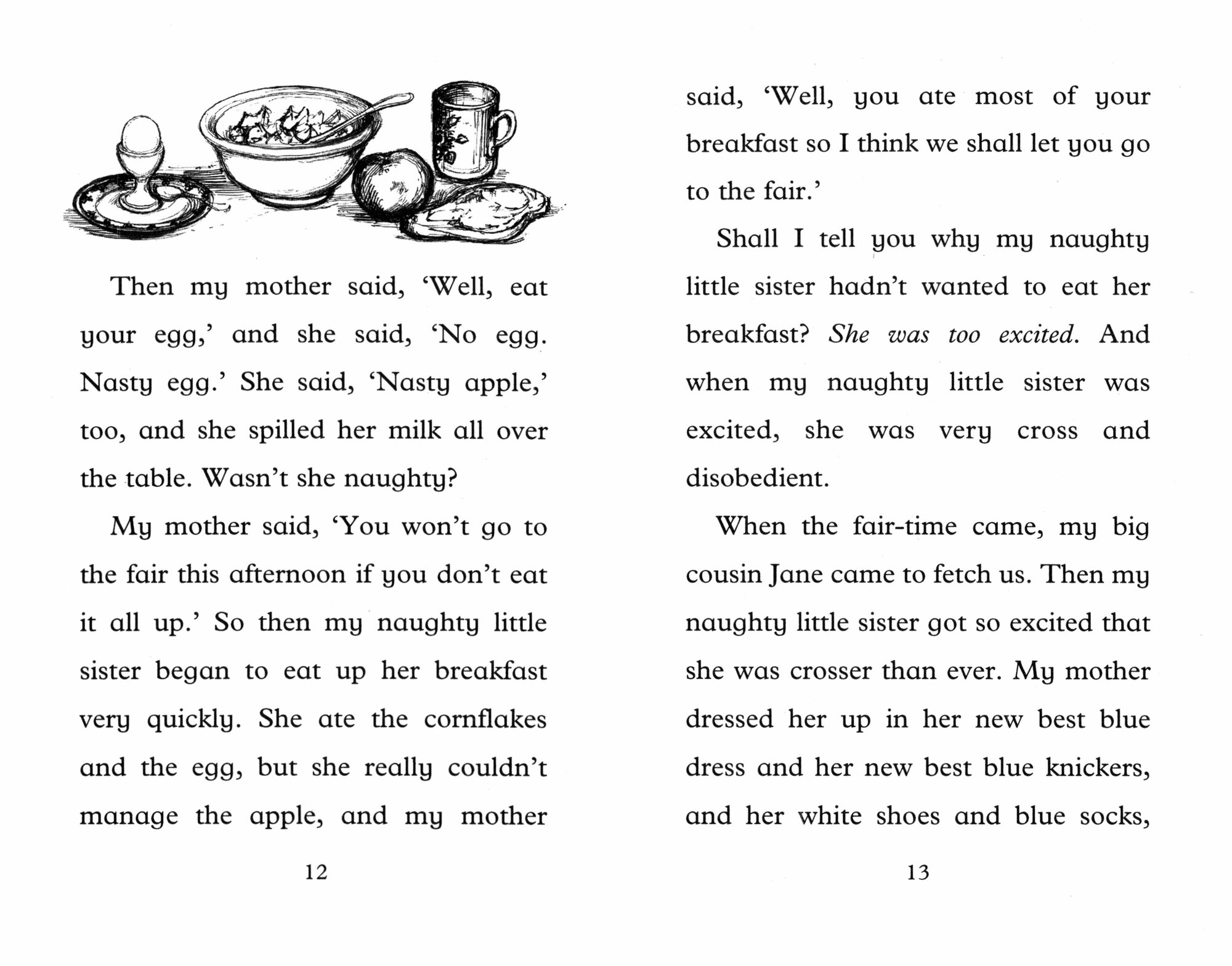 My naughty little sister is stubborn and greedy and full of mischief. She tries to cut off the cat's tail and eats all the trifle at Harry's party! How much bother can one little sister be?