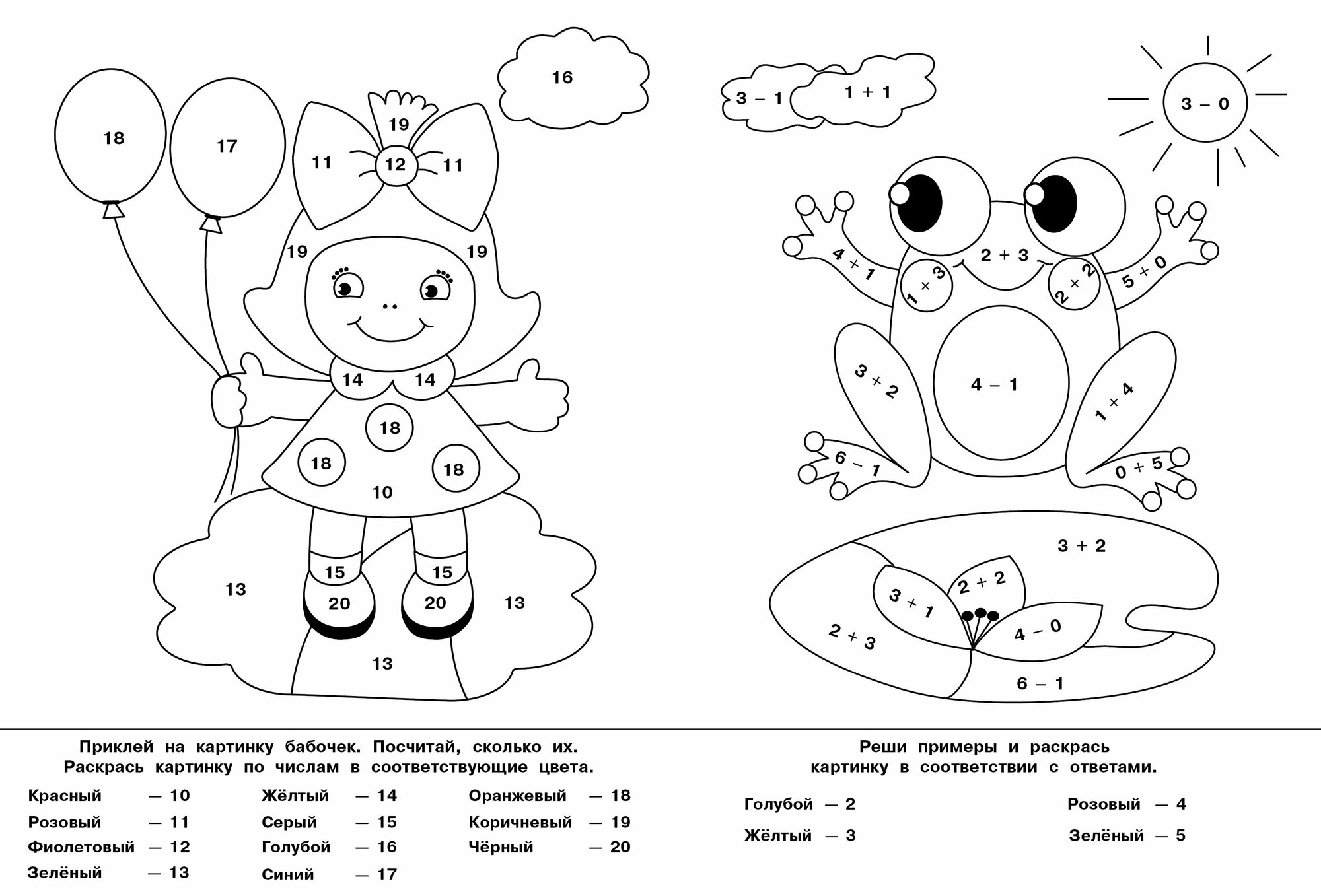 Эта чудесная книжка поможет вам организовать занятия с ребёнком по обучению счету и развитию навыков сложения и вычитания в пределах 20.