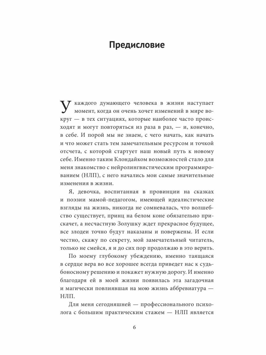 Благодаря этой книге вы поймете, что НЛП - интереснейшее путешествие в сторону самопознания, постижения своих возможностей, путей к успеху и собственной эффективности, а по сути - к мечте и счастью.