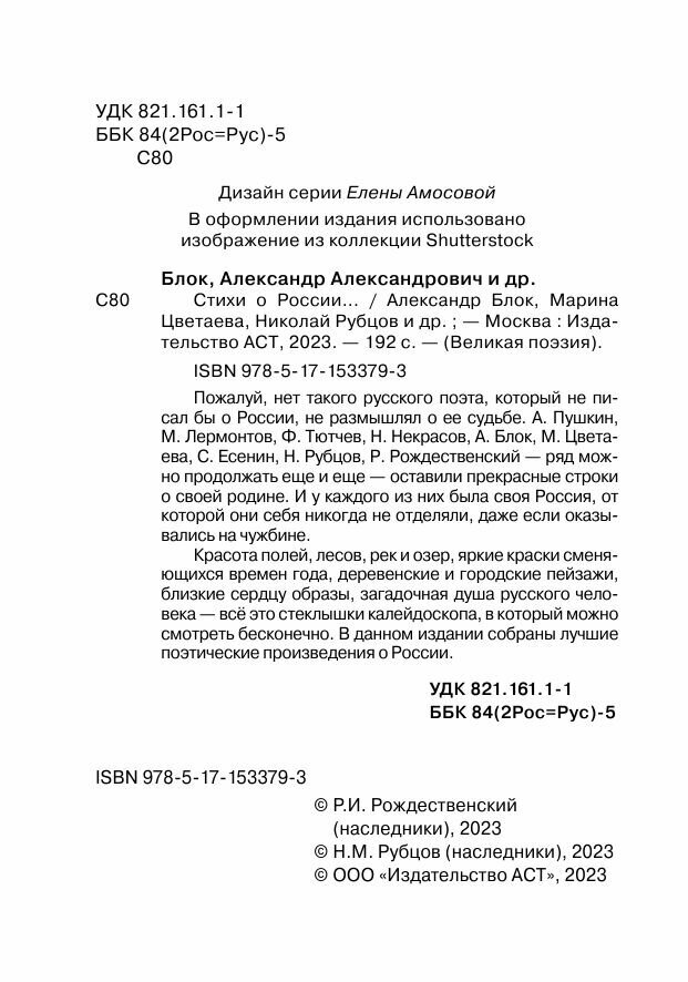 | Автор | Блок Александр Александрович, Есенин Сергей Александрович, Рубцов Николай Михайлович |