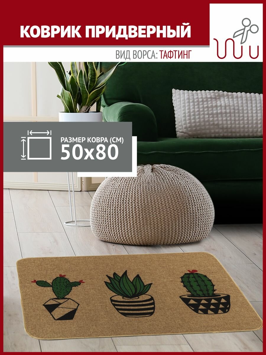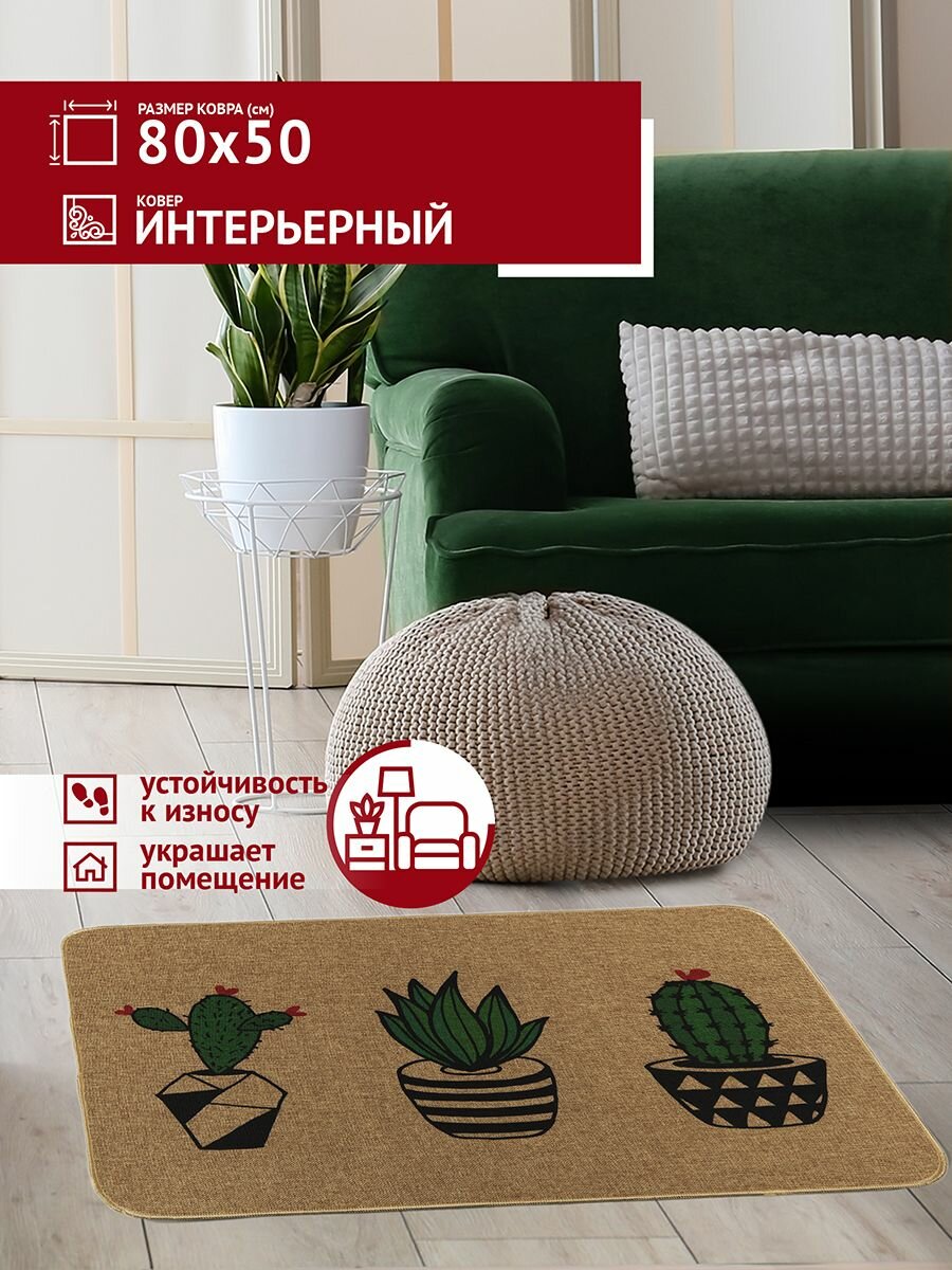 Коврик Profiflooring 50х80 см зеленый интерьерный Hoff Кактусы