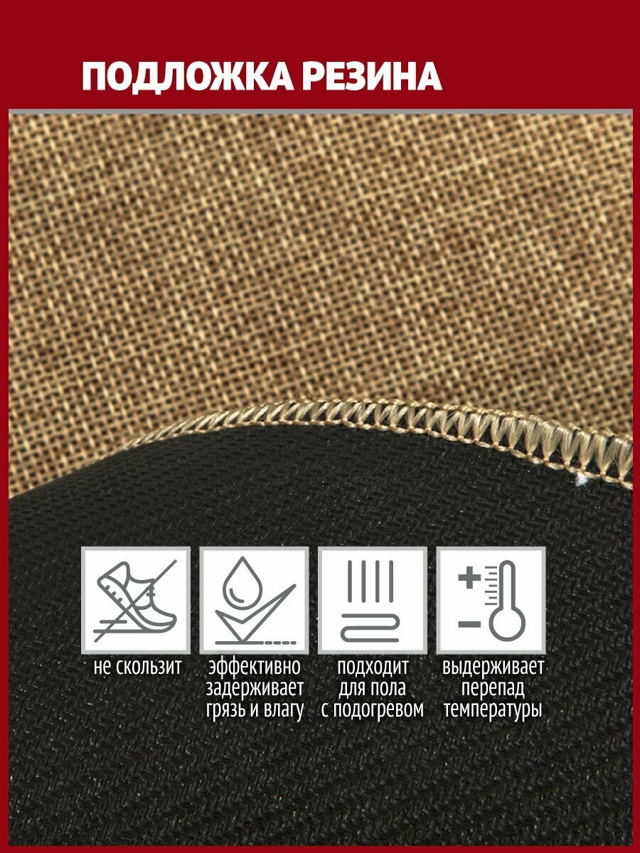 Этот элегантный придверный коврик подходит для использования внутри помещений. Его полипропиленовый тафтинговый ворс с плотной структурой моментально впитывает большое количество влаги (до 5 литров/кв.м) и эффективно очищает обувные подошвы от мелкого мусора и песка. Задерживая всю пыль и грязь, коврик сохранит чистоту напольного покрытия, поэтому уборку можно делать реже. Эластичная подложка из ПВХ с широким кантом придает изделию дополнительную прочность и препятствует протеканию жидкости на пол.