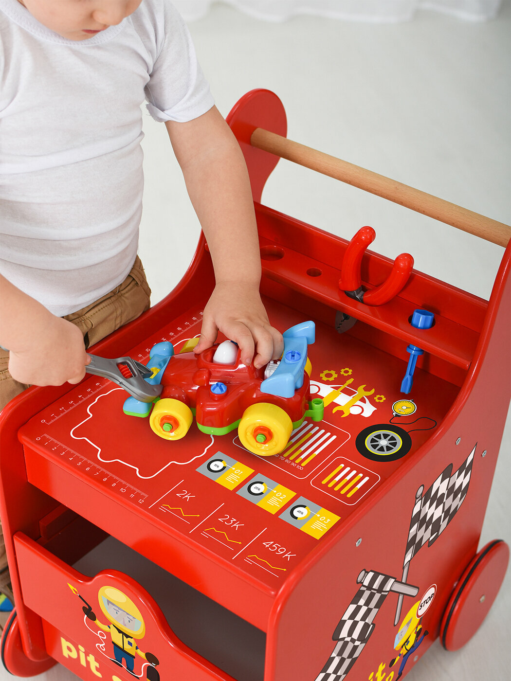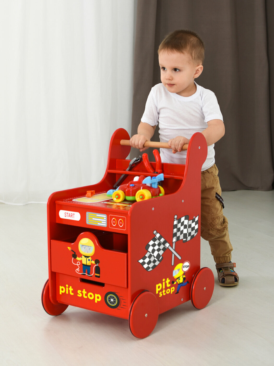 Развивающий игровой центр деревянная каталка детская тележка с ручкой MEGA TOYS Pit Stop набор инструменты детские для мальчиков и малышей / ходунки пит стоп игрушка Hoff
