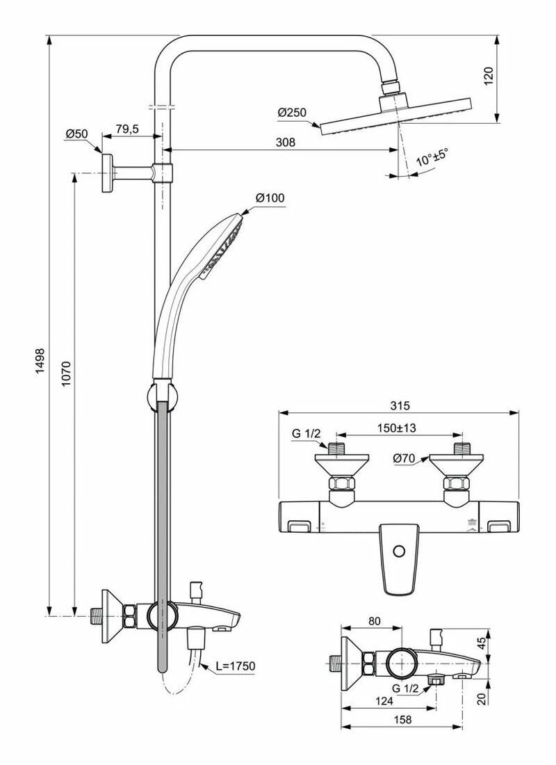 Душевая система Ideal Standard Ceratherm T25 A7590AA с термостатом.