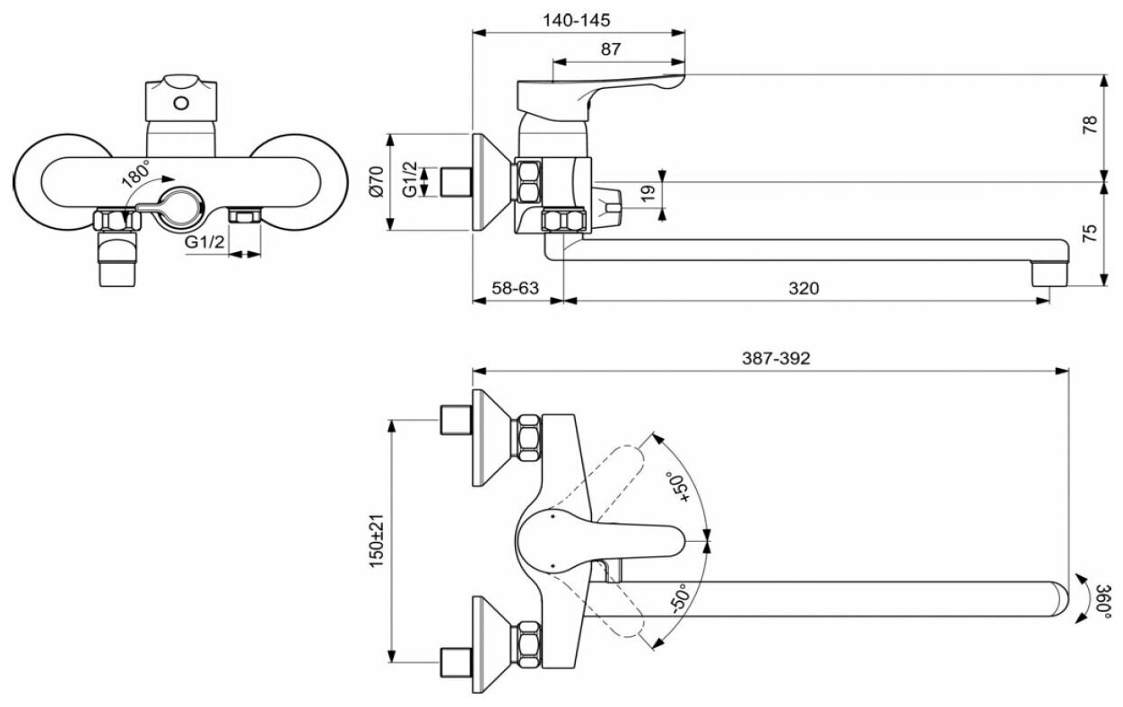 - Ручное переключение ванна/душ.