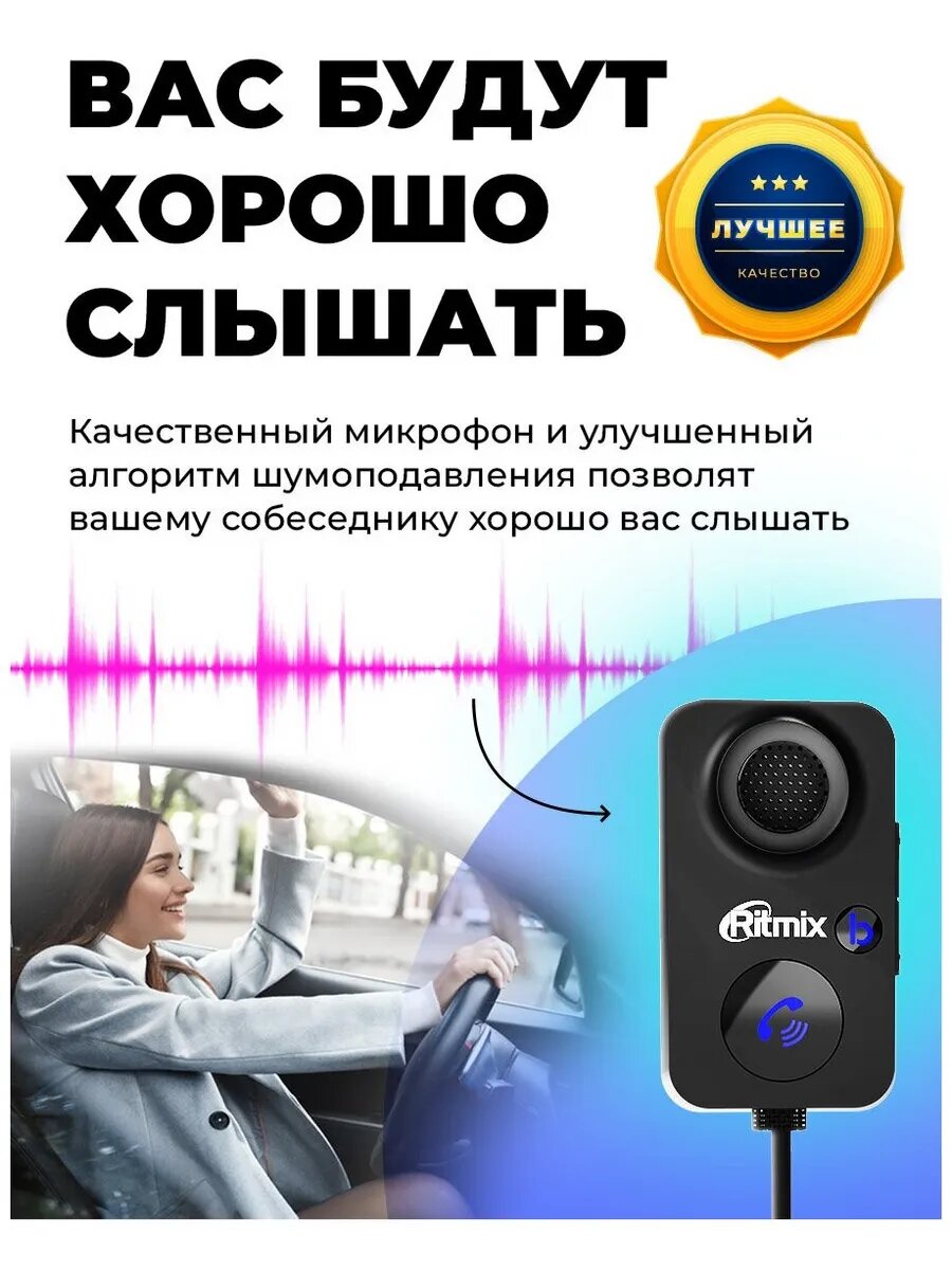 Bluetooth-ресивер Ritmix BTR-100 представляет собой простое и удобное устройство, предназначенное для трансляции музыки и входящих звонков, поступающих на телефон. Благодаря ему вы сможете оставаться на связи с семьей, друзьями и коллегами даже во время управления транспортным средством. Модель отличается простотой использования — для соединения используется модуль Bluetooth 5.0, подключение к стереосистеме осуществляется при помощи порта USB и AUX. Для управления повторителем на корпусе предусмотрено несколько механических кнопок для вызова голосового помощника и усиления баса. Также на лицевой стороне расположен направленный микрофон с шумоподавлением, что обеспечит качественную связь.