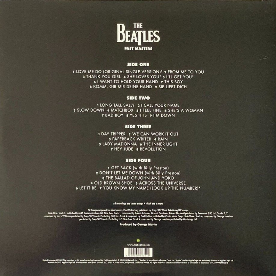 Существует много сборников песен The Beatles, но Past Masters уникален по своему содержанию. Из 33 композиций этого двойного альбома, 29 выпускалось только на "сорокопятках" и на мини-альбоме Long Tall Sally. Звучание остальных 4 композиций несколько отличается от того, что можно услышать на LP , правда это уже для особых ценителей творчества The Beatles. Замечательный ремастеринг лучшего по составу сборника The Beatles!