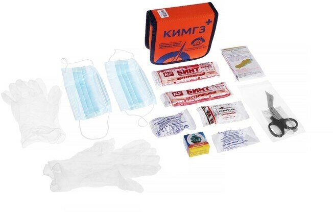 | Комплектация | маска медицинская нестерильная одноразовая - 2 шт, перчатки медицинские нестерильные, размером не менее М - 2 пары, устройство для проведения искусственного дыхания «Рот-устройство-рот» - 1 шт, жгут кровоостанавливающий для остановки артериального кровотечения - 1 шт, бинт марлевый медицинский 7 м х 14 см - 2 шт, салфетки марлевые медицинские стерильные, размером не менее 16 см х14 см №10 - 1 уп, лейкопластырь фиксирующий рулонный, размером не менее 2 см x 500 см - 1 шт, покрывало спасательное изотермическое - 1 шт, ножницы для разрезания повязок - 1 шт, инструкция по оказанию первой помощи с применением КИМГЗ - 1 шт, сумка - 1 шт |