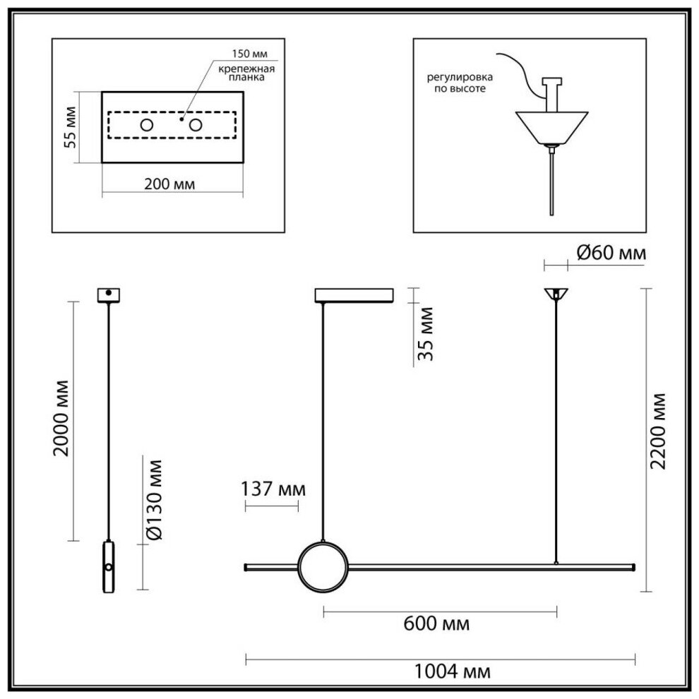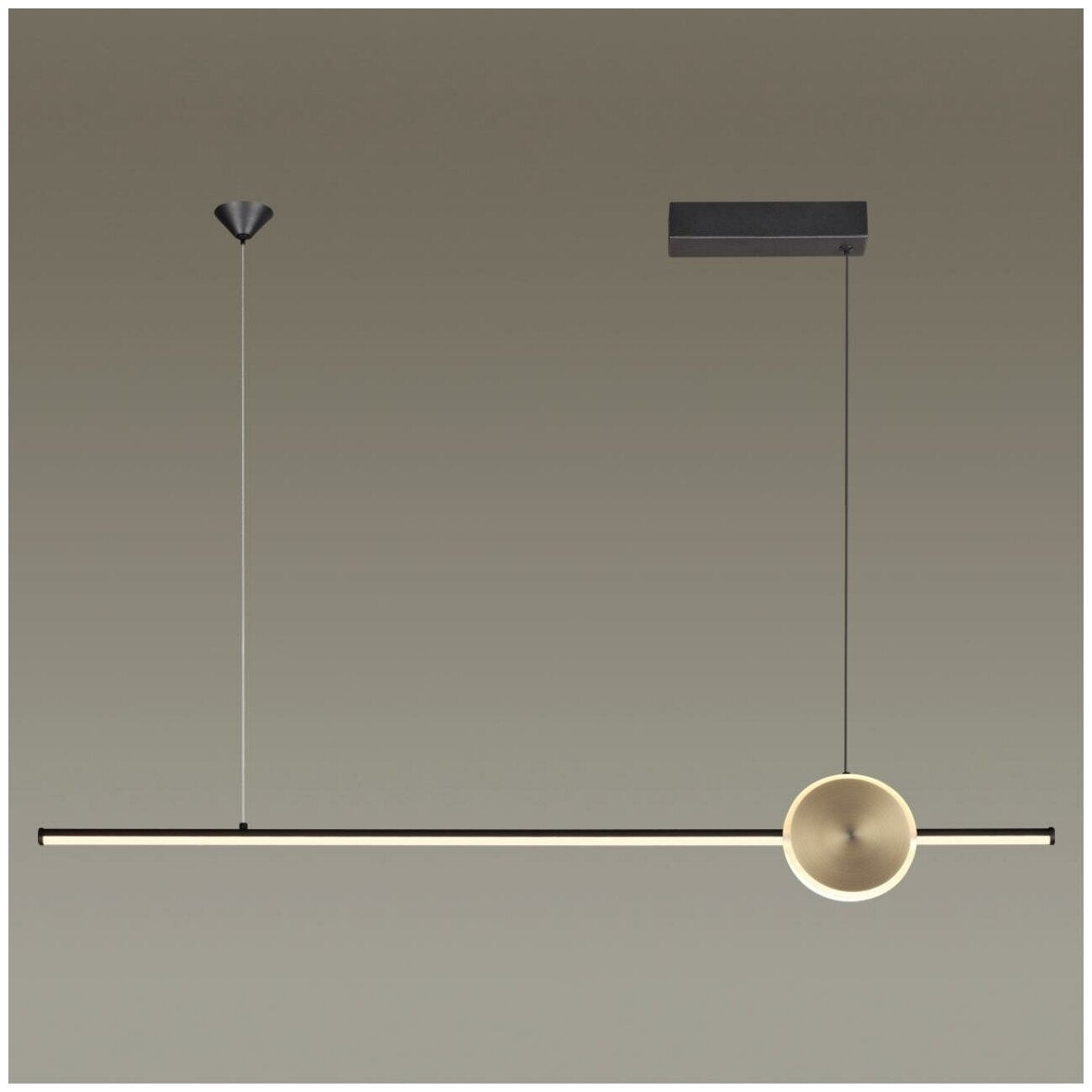 Подвесной светильник с якро выраженной четкой геометрией - стильное решение для современного интерьера с чертами ретро-футуризма. Светильник образует эффектную световую линию за счет нижней полоски света и LED по окружностям, расположенным по обеим сторонам основания.