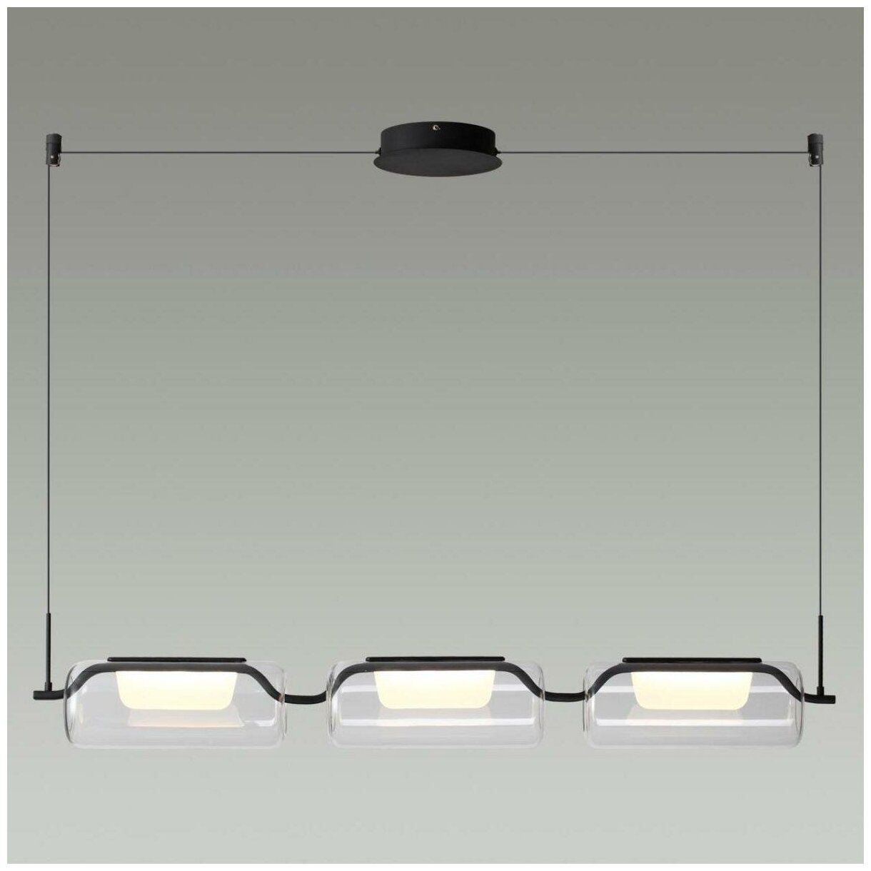 Подвесной светильник Odeon Light серии L-VISION. Создаст в помещении атмосферу комфорта. Размеры 1.1x0.1x1.8 m. Параметры пылевлагозащиты IP — 20. Плафон стеклянный прозрачный, а материал/цвет арматуры металл/черный. Имеются встроенные светодиодные лампы, рассчитанные на весь срок службы светильника. Площадь освещения охватывает 9 m². Страна происхождения бренда — ИТАЛИЯ. Вес с упаковкой 4.1 kg