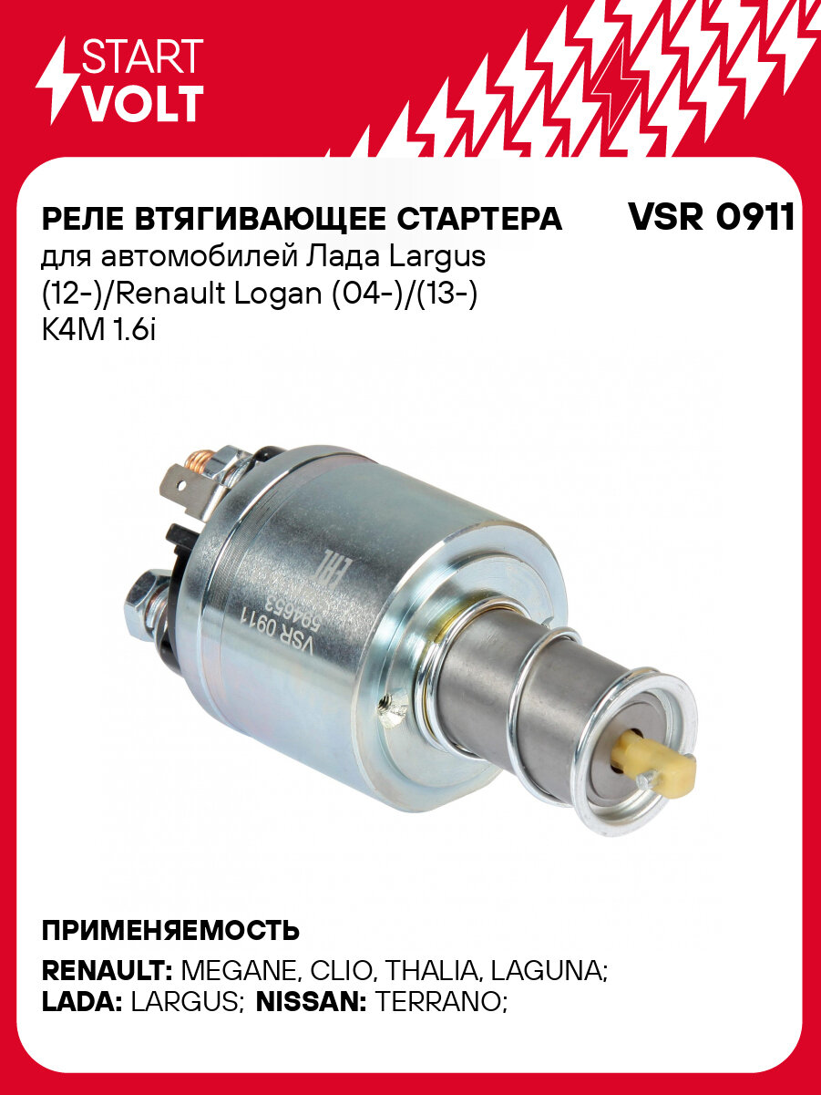 Реле втягивающее стартера для автомобилей Лада Largus (12-)/Renault Logan (04-)/(13-) K4M 1.6i StartVolt (VSR 0911)