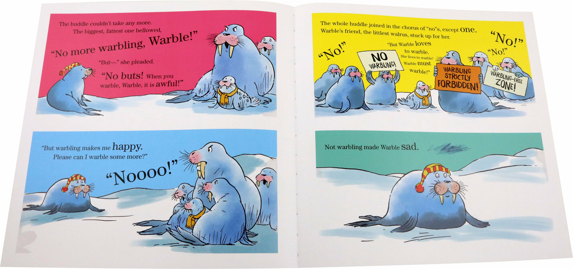 Unfortunately, she is not very good at it! And when her atrocious warbling causes an avalanche, the other walruses leave her all alone.