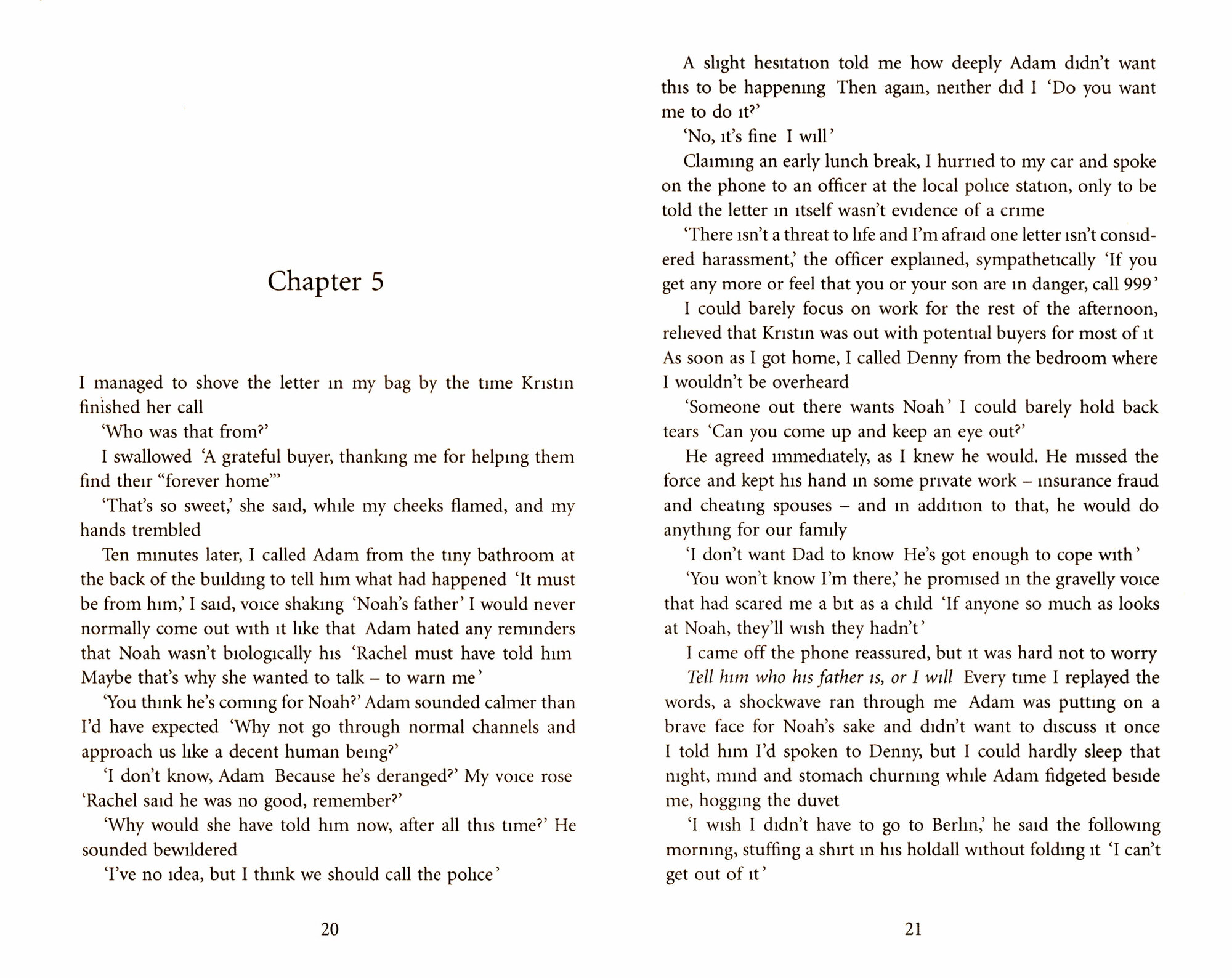 Непредсказуемая история! Как только Рейчел могла просто так взять и отдать своего нерожденного ребенка сестре, будто вещь? Теперь её сестра Джесс живет в постоянном страхе, что Ноя заберут обратно. Внезапно Рейчел находят мертвой и Джесс начинает подозревать, что ее убили. Все ещё больше запутывается... Замечательная книга!