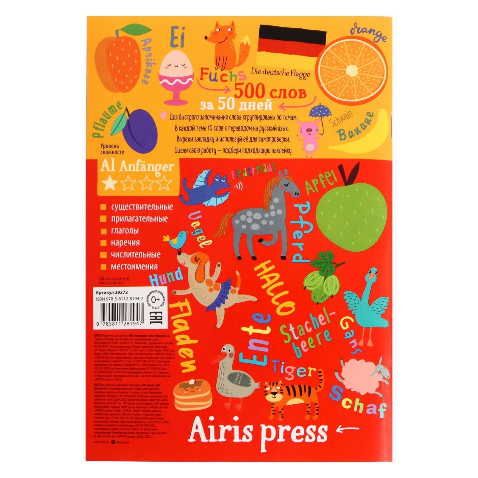 Тетрадь для активного запоминания слов 500 немецких слов Уровень A1 (Чепанова Евгения Ивановна); Айрис-пресс, 2022