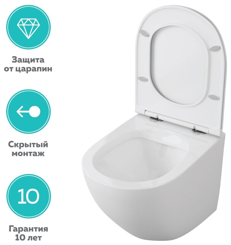 | Комплектация | безободковая чаша подвесного унитаза; комплект крепежа; крышка; сиденье; чаша |