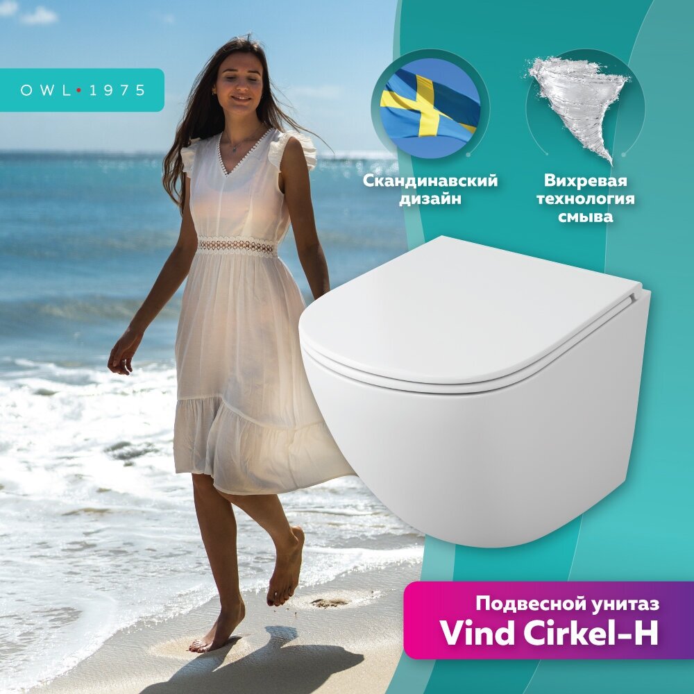 Сервис сравнения цен СкидкаГИД предлагает сравнить цены на товар «Унитаз Owl 1975 Vind Cirkel-H TOWLT190302 подвесной с сиденьем Микролифт»