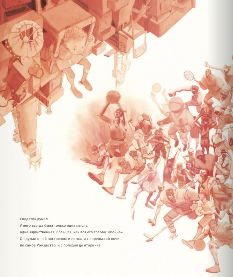 Солдатик думал. Одну-единственную мысль, размером с его голову: и летом, и с апрельской ночи по самое Рождество, и с полудня до вторника. Война. Он думал о ней всегда.
