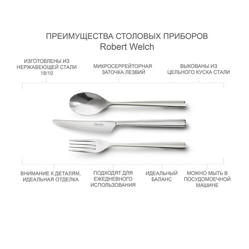 Набор столовых приборов на 6 персон, 24 предмета Blockley от бренда Robert Welch - идеальное решение для любого дома. Комплект включает в себя все необходимые предметы для комфортного и стильного сервировки стола. Благодаря высокому качеству материалов, эти приборы обеспечивают прочность и долговечность. Каждый элемент набора имеет элегантный дизайн с гладкими линиями и удобными ручками, что делает использование приятным и удобным. Выразите свою индивидуальность и добавьте шик в свою ежедневную жизнь с этим изысканным набором столовых приборов Blockley ROBERT WELCH.