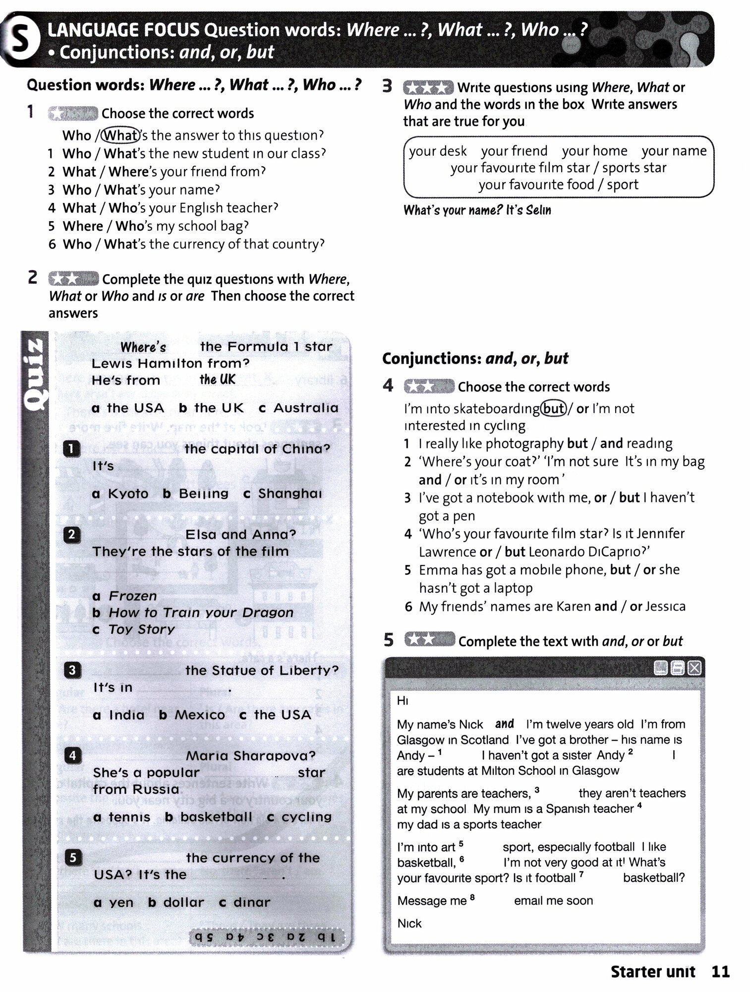 The Workbook contains six pages of additional practice for each of the Student's Book units. The Starter unit has eight pages. This comprises exercises for vocabulary, grammar, reading and writing at three levels of difficulty.