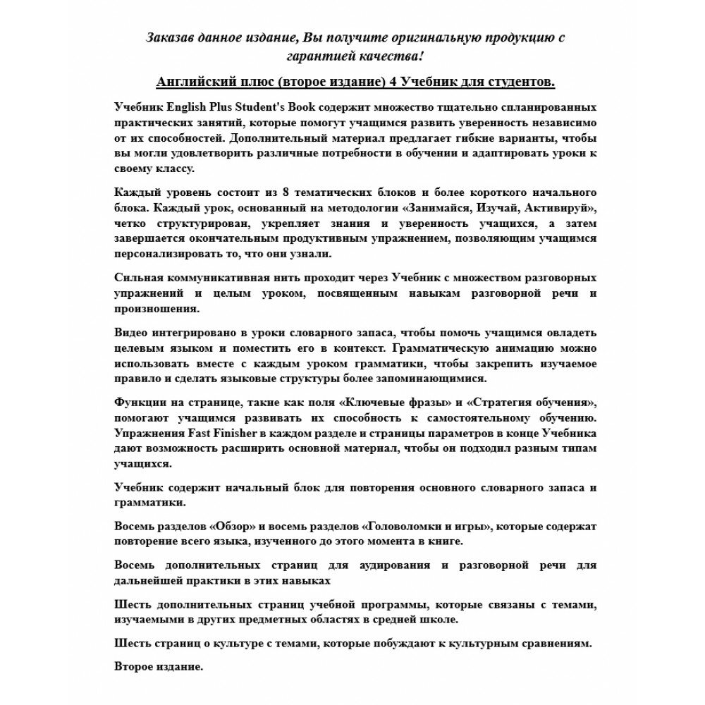 Сервис сравнения цен СкидкаГИД предлагает сравнить цены на товар «Книга: English Plus. Level 4. Student's Book (Wetz Ben, Pye Diana); Oxford, 2022»