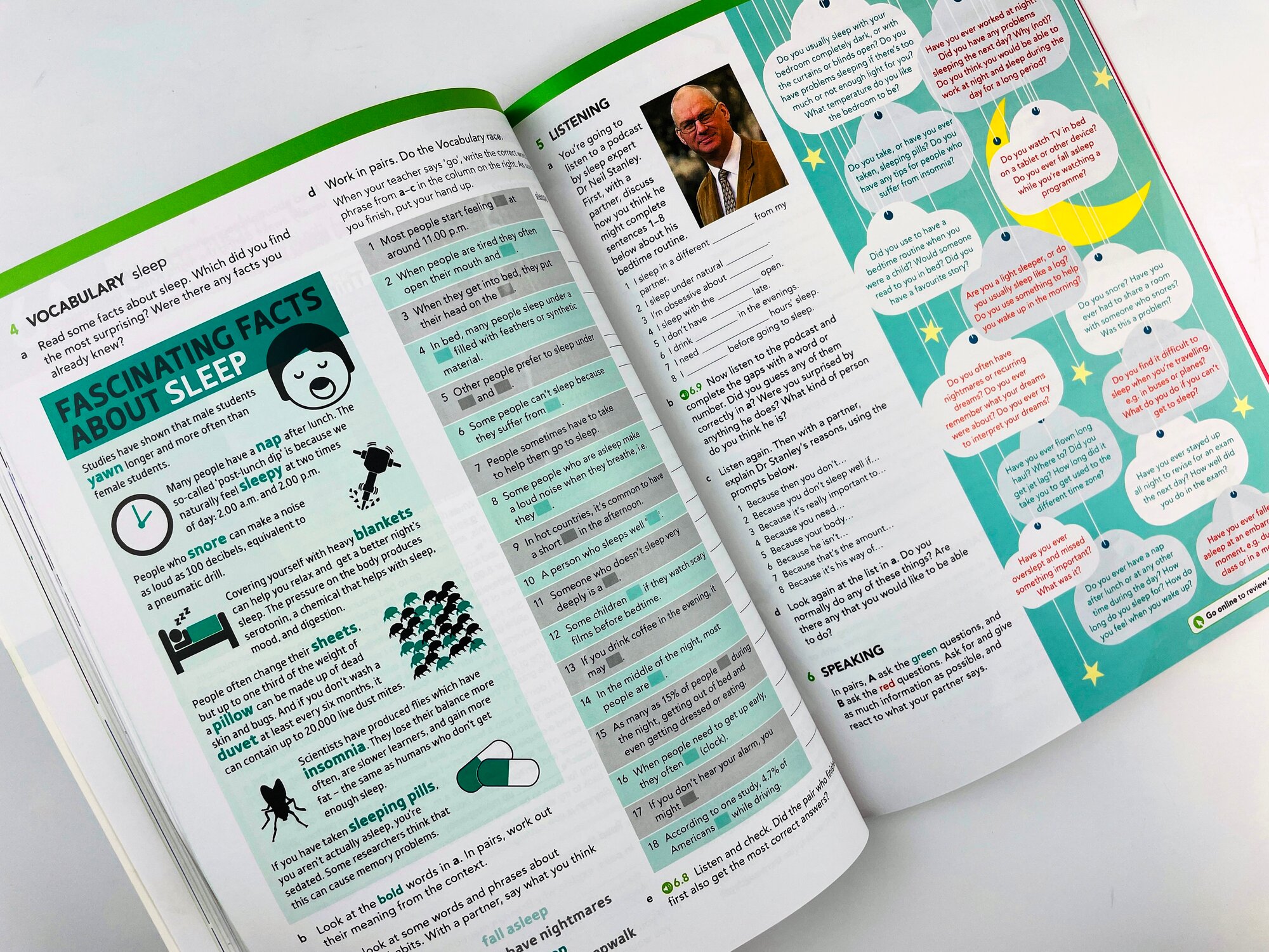 Lessons and activities provide the language, motivation and opportunity students need to speak conifidently. Students are gradually introduced to authentic listening and reading.