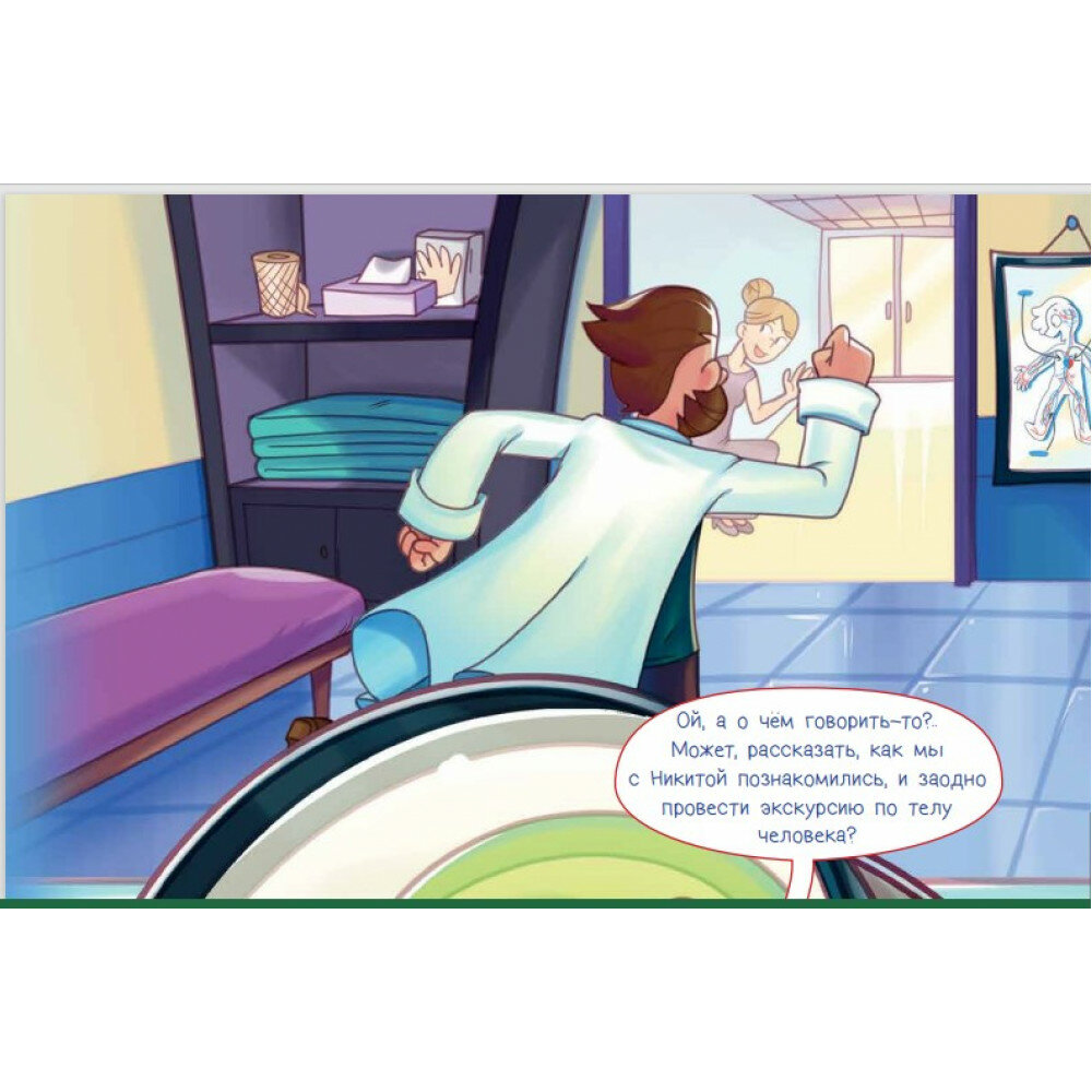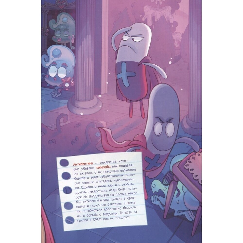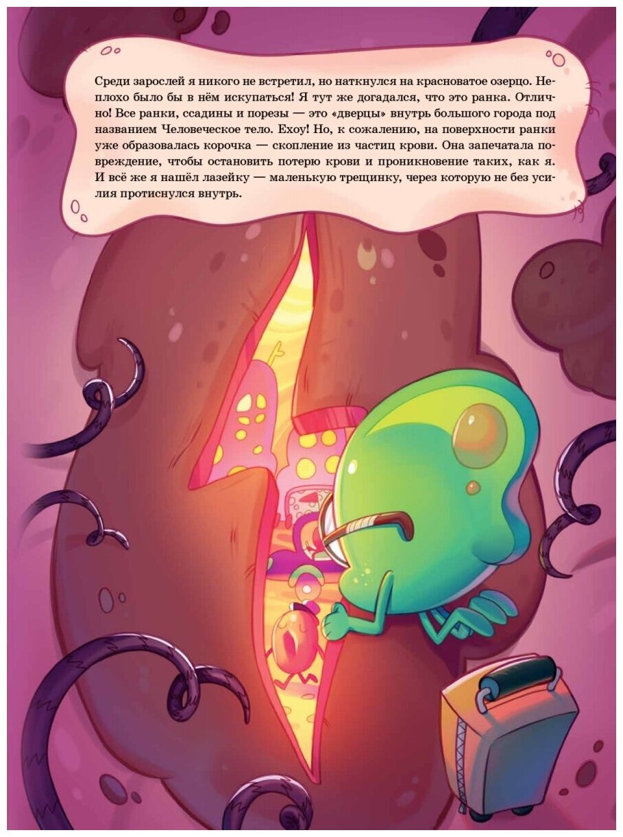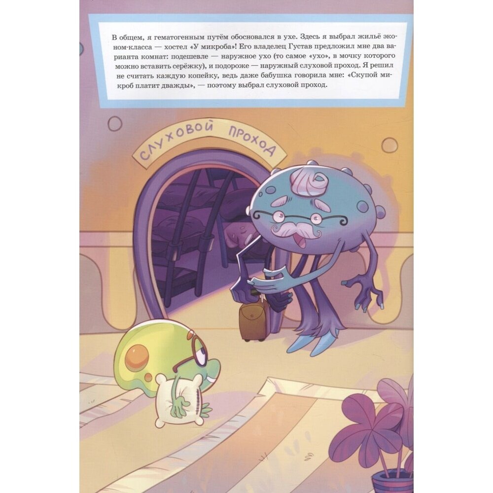 Знакомьтесь! Это Никита Жуков - известный детский врач-невролог, который знает всё о болезнях и способах их лечения. А это - его новый друг… микроб Дима. Вместе с Димой вас ждёт самое неожиданное и весёлое приключение. Вы отправитесь в путешествие по большому городу под названием Человеческое тело: промчитесь на скоростном кровобусе по всем кровеносным системам организма, побываете на станции "Лёгкие", посмотрите, как без перебоев работает деловой центр "Сердце" и заселитесь в хостел "У микроба", расположенный в среднем ухе. Будьте осторожны - велика вероятность встретить стражу лейкоцитов и попасть под атаку антибиотиков! Кроме того, вы найдёте ответы на многие вопросы: