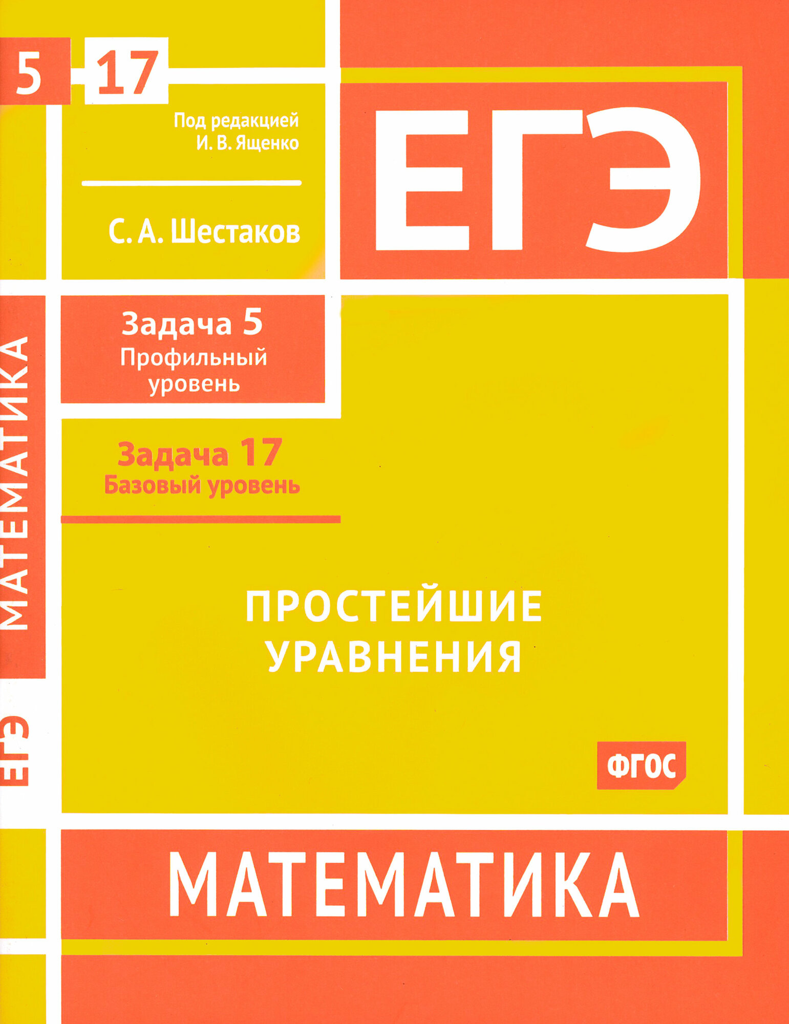 ЕГЭ Математика Простейшие уравнения Задача 5 профильный уровень задача 17 базовый уровень Рабочая тетрадь (Шестаков Сергей Алексеевич); МЦНМО, 2023