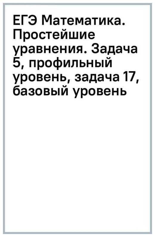 Рабочая тетрадь по математике серии «ЕГЭ. Математика» ориентирована на подготовку учащихся старшей школы к успешной сдаче Единого государственного экзамена по математике по теме «Простейшие уравнения» (базовый и профильный уровни). На различных этапах обучения пособие поможет обеспечить уровневый подход к организации повторения, осуществить контроль и самоконтроль знаний по теме «Простейшие уравнения». Рабочая тетрадь ориентирована на один учебный год, однако при необходимости позволит в кратчайшие сроки восполнить пробелы в знаниях выпускника.