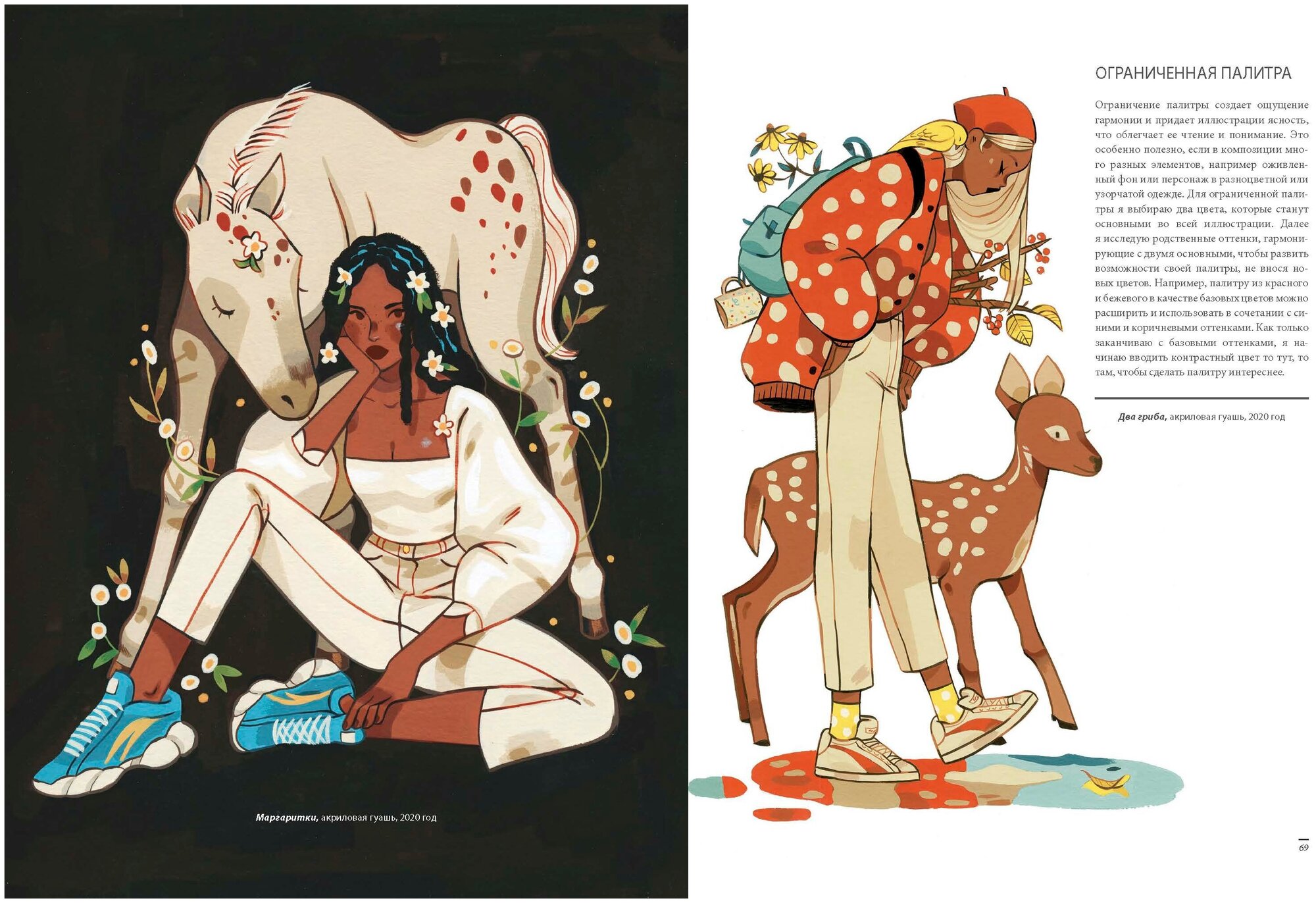 Чудесный артбук от потрясающей художницы! Заказала его в качестве подарка на свой день рождения и не пожалела. В нем очень много красивых и теплых иллюстраций и фотографий. Мне было интересно читать о истории ее творчества, узнать, чем она любит рисовать и что ее вдохновляет. Одна из приятнейших вещей в этой книге - это уроки, в которых художница подробно описывает каждый шаг создания иллюстрации. Думаю, это очень здорово может помочь в творческом развитии. Артбук выполнен качественно, странички мелованные, картинки сочные и яркие. Я очень довольна покупкой.