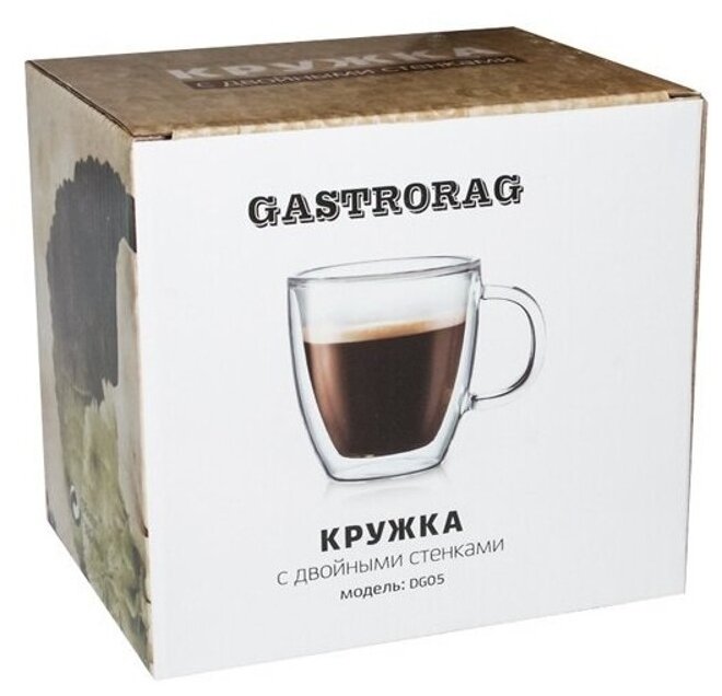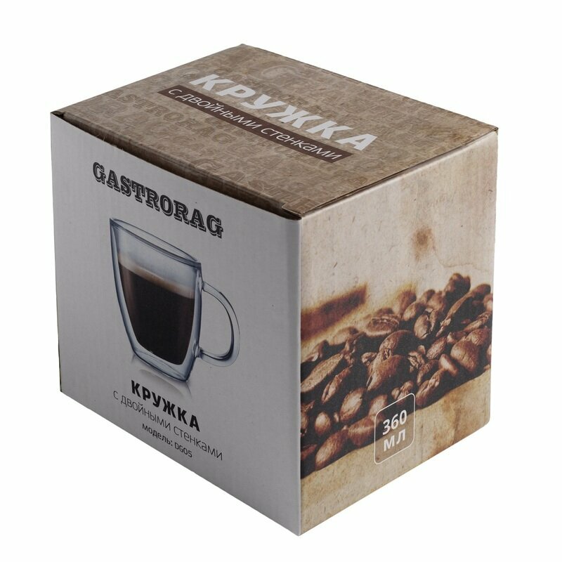 Кружка с двойными стенками и дном Gastrorag - это универсальная стеклянная посуда для кухни, которую можно использовать дома, на даче, в офисе. Кружка выдувается вручную из жаропрочного боросиликатного стекла. Оно легкое, тонкое, но при этом прочное, не окрашивается и не мутнеет со временем, выдерживает температуру от -20 до +150оС. Большая кружка объемом 360 мл весит всего 165 г, ее удобно держать в руках, можно ставить в микроволновую печь и мыть в посудомоечной машине. Вы можете использовать ее как кружку термос для чая, кофе, какао, поскольку благодаря двойному стеклу она дольше сохраняет исходную температуру жидкости, не обжигает руки при подаче горячих напитков и не запотевает при подаче холодных. Прозрачная стеклянная чашка по-новому раскроет красоту ваших любимых напитков, будь то кофе латте, капучино, китайский цветочный чай или яркий многослойный коктейль. Необычная кружка в яркой коробке станет приятным подарком женщине и мужчине, жене и мужу, маме и папе, бабушке и дедушке, девушке и парню, другу и подруге. Порадуйте своих близких и коллег подарочной чайной и кофейной кружкой на день рождения, новый год, 8 марта, 23 февраля, и просто на каждый день!