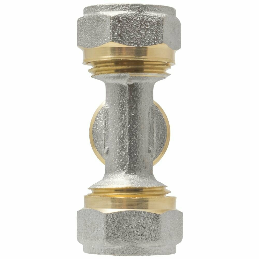 Предназначен для соединения м/п труб. При установке данного фитинга не требуется специальное оборудование. Достаточно разводного ключа. Соединение получается разъемным, что позволяет при необходимости произвести обслуживание участка трубопровода. Для обслуживания самого фитинга достаточно сменить уплотнительные кольца.Рабочая температура до 95 С, нормативное рабочее давление до 10 бар. Материал корпуса - никелированная латунь CW617N