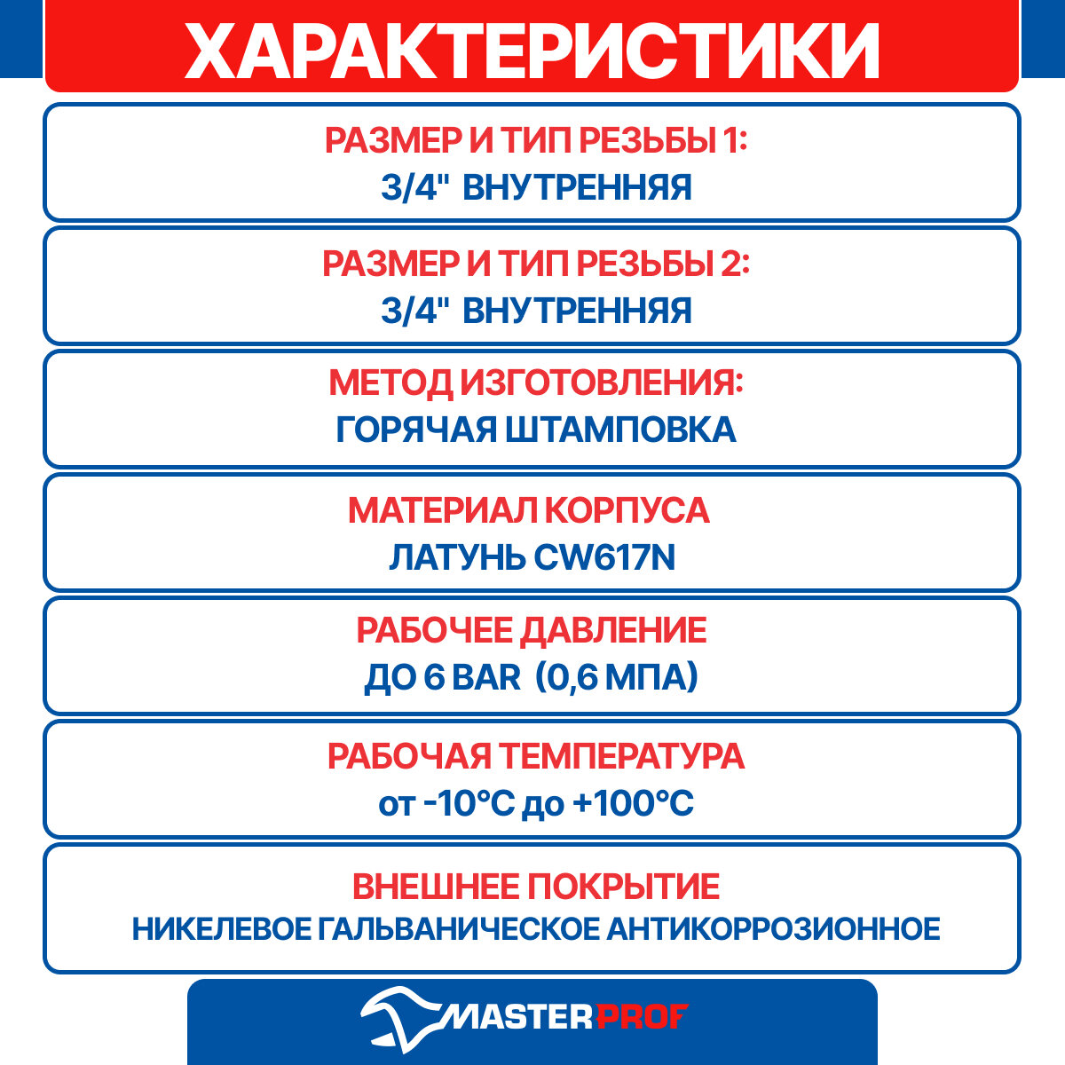 | Размеры резьб | 3/4-3/4 |