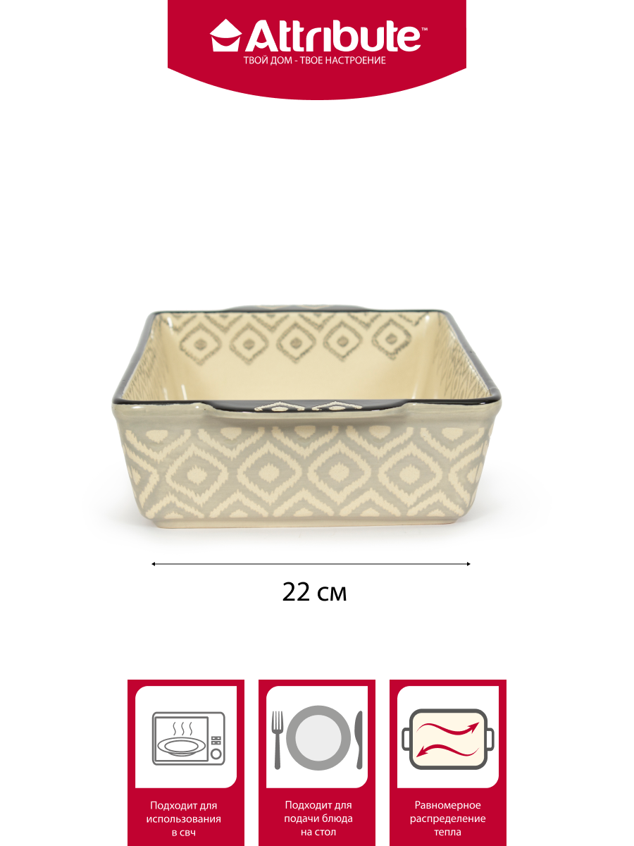Форма для запекания Attribute выполнена из высококачественной керамики. Данная форма станет отличным дополнением к набору кухонной утвари. Форма достаточно функциональна и удобна в использовании, подходит для запекания блюд различной сложности. Глянцевые стенки изделия легко отмываются от остатков еды, форму можно мыть в посудомоечной машине.