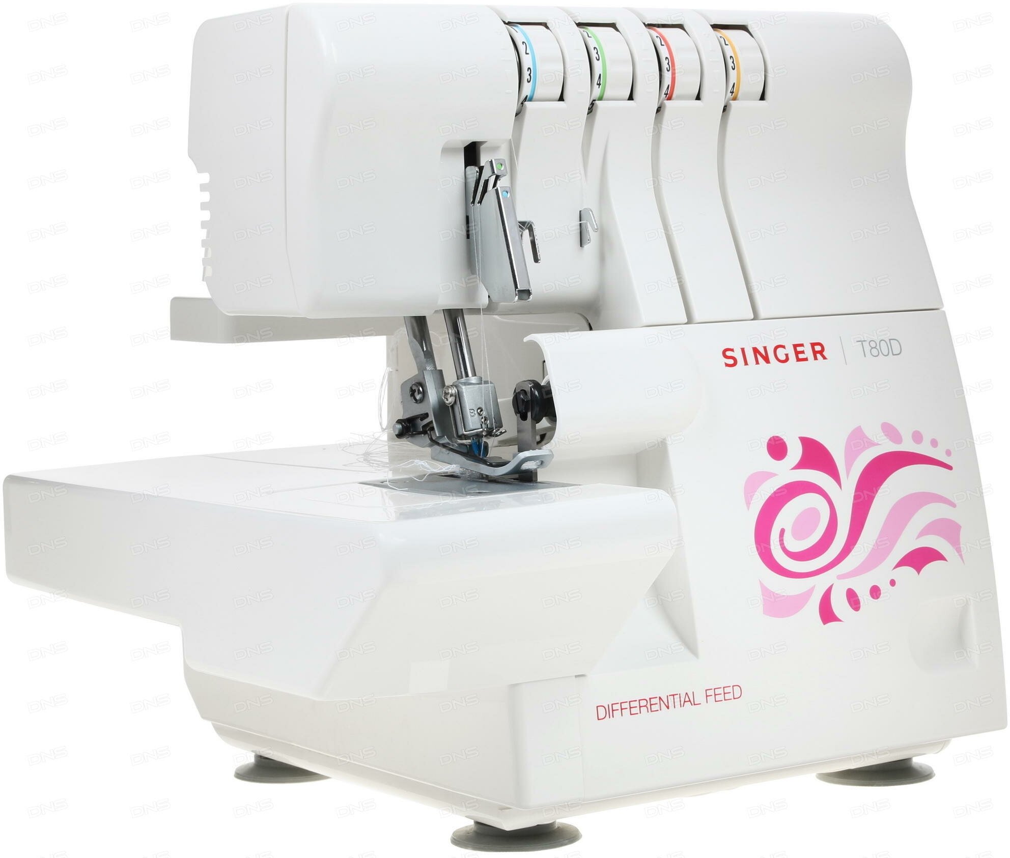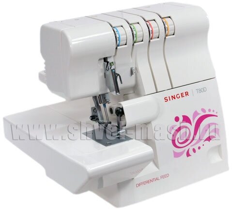 Оверлок Singer T80D отлично справится с обработкой различной ткани 4-х и 3-х ниточными швами. Цветная маркировка заметно облегчает процесс заправки нитей, а возможность изменения различных параматеров, например, ширины обрезки, давления лапки, дифференциального транспортера, позволяет достичь оптимальных результатов.