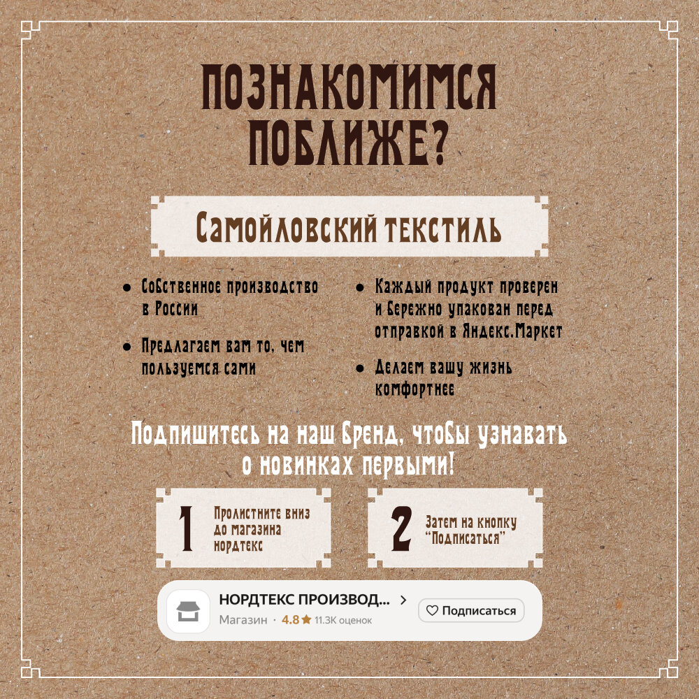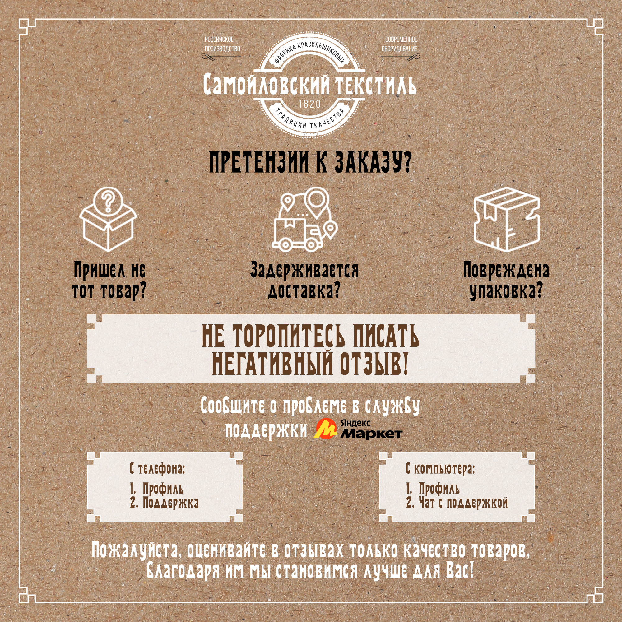 Предметы постельного белья Самойловский текстиль - это 100% хлопок и классическое полотняное плетение бязь в сочетании с современными технологиями производства. Автоматический раскрой и пошив гарантируют идеально ровную строчку, а стойкий краситель выдержит до 400 стирок! Технология двойного мягчения дарит особенную мягкость прикосновений по сравнению с другими тканями из бязи, сохраняя все преимущества натурального хлопка: удержание сухого тепла, прочность, отсутствие статического электричества, простота ухода. Полный цикл производства позволяет гарантировать высокое качество изделий на всех этапах: от пряжи до упаковки.