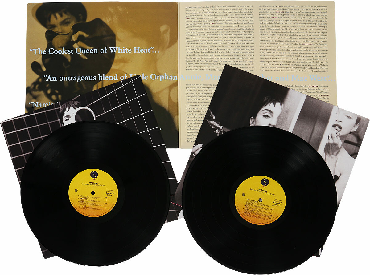 Вышедшее в 2018 году переиздание на двух пластинках сборника Мадонны "The Immaculate Collection" 1990 года, достигшего бриллиантового статуса продаж. Серия винилов Greatest Hits On Vinyl. Warner Music с гордостью представляет виниловую серию Greatest Hits, в которой выйдут сборники десяти классических артистов из каталога компании. Многие альбомы впервые появятся на виниле. В число релизов вошли охватывающие ключевые моменты карьеры сборникиMadonna, Phil Collins, Notorious B.I.G, Rod Stewart, The Pogues, a-ha и многих других. Выход запланирован на две первые пятницы июня. Издания серии просто обязаны попасть в коллекции давних и новых фанатов.