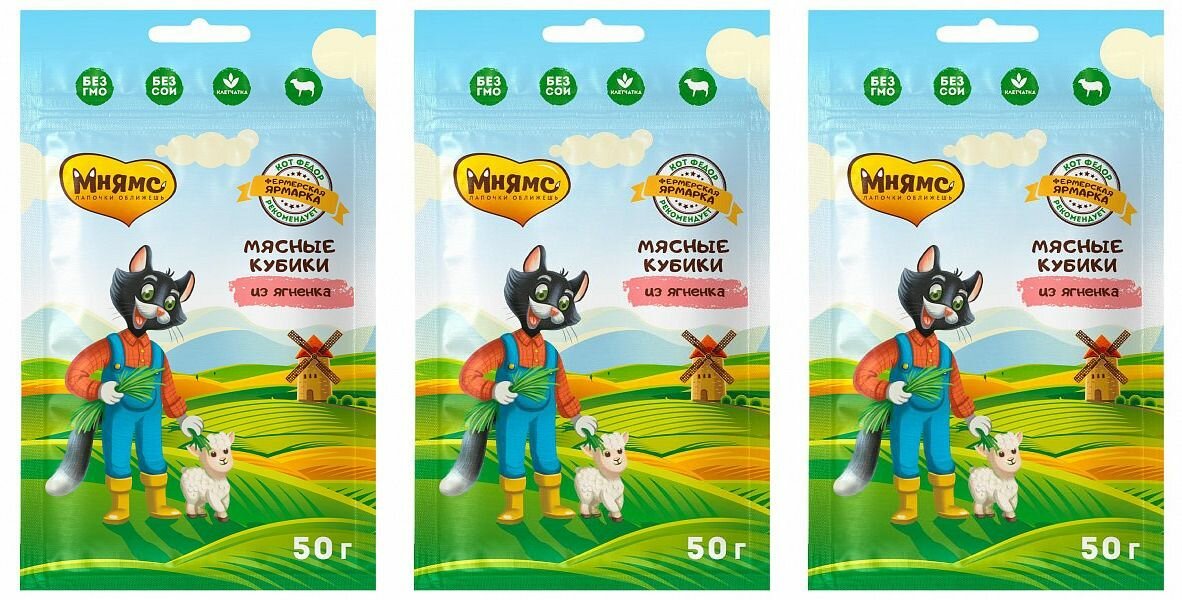 Мнямс Фермерская Ярмарка лакомство для кошек мясные кубики (Ягненок 50 г.)