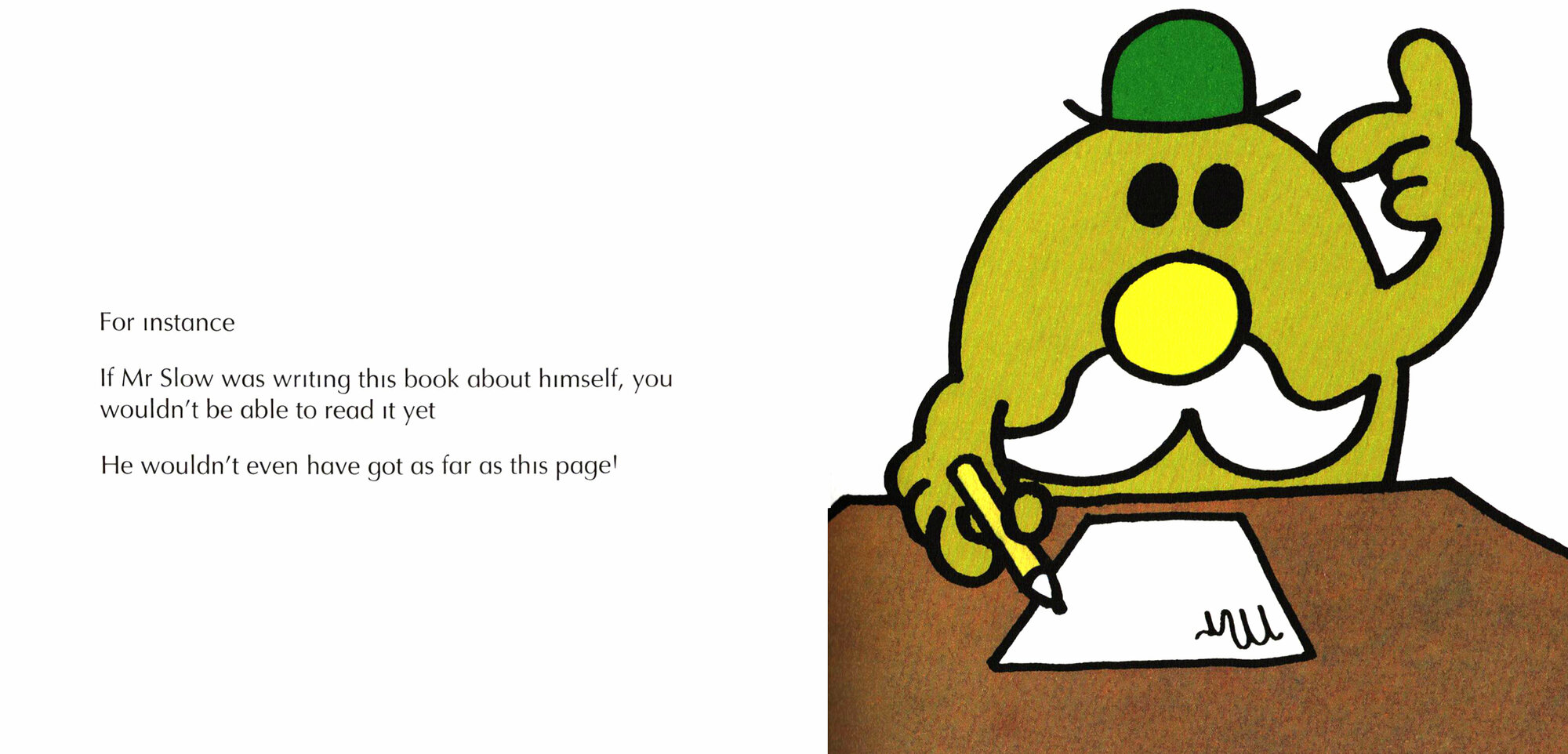 Какая славная история! Нет, правда! Я думаю, что когда мистер Слоу становится водителем парового катка и наезжает на мистера Хэппи, делая из него веселый блин это действительно забавно. Такая буффонада напоминает мне о временах моего детства, когда мы смеялись над приключениями и догонялками Тома и Джерри. Мне нравится творческих подход автора к этой простой истории, нравится какой забавной удалось ее сделать. Добавлю также, потому что об этом нельзя молчать, что мистер Хэппи сует свой нос в чужие истории. Ему нужно быть начеку, чтобы кто-нибудь не ударил его молотком по лицу (как это сделали с мистером Ноузи). Итак, хотя обычно я не поощряю наезжать на людей паровым катком, здесь это было действительно смешно, и мы все оценили.